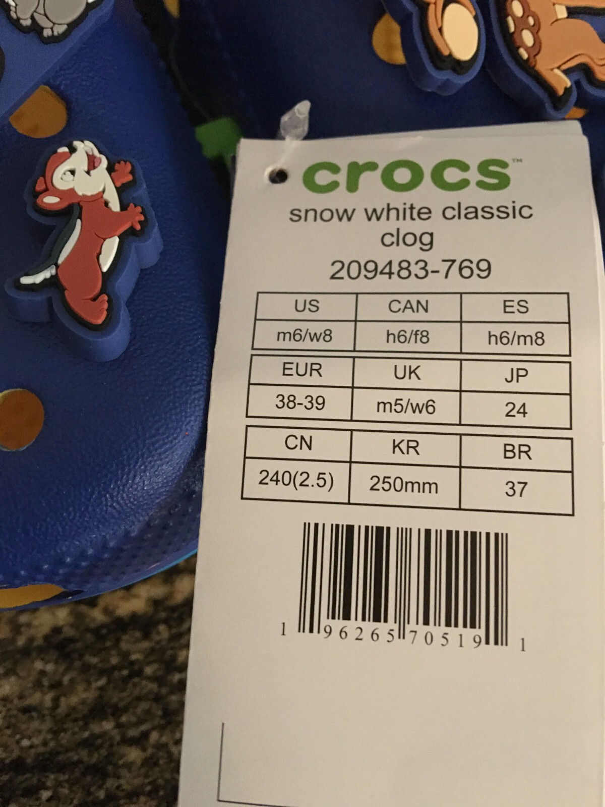 NEW Womens Crocs Disney Snow White Clog Shoes, size 8 also mens size 6