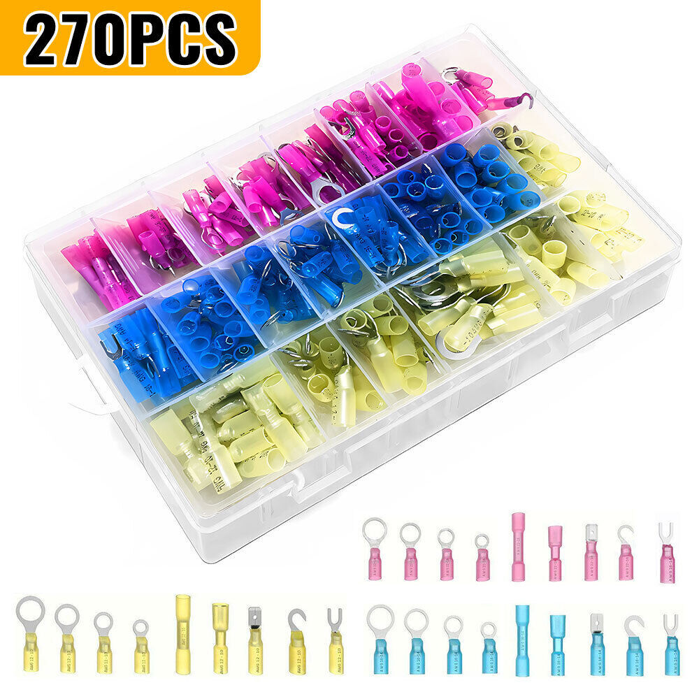 270PCS Marine Grade Heat Shrink Ring Connectors Crimp Terminals Wire Connectors