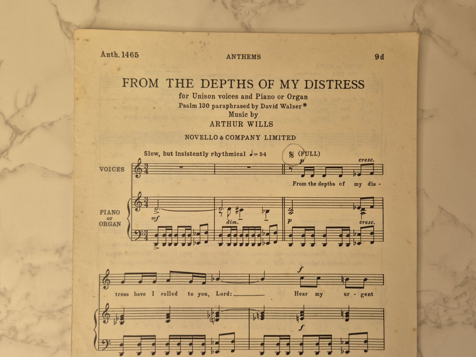 как выглядит From The Depths Of My Distress Arthur Wills 1966 Novello For Unison Voices Piano фото