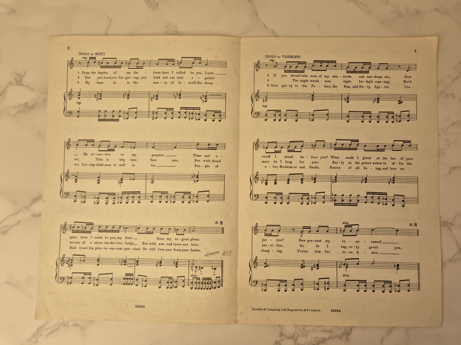 From The Depths Of My Distress Arthur Wills 1966 Novello For Unison Voices Piano