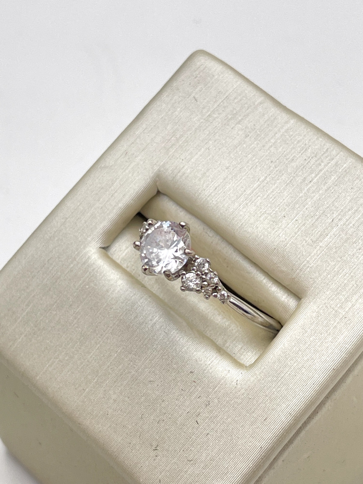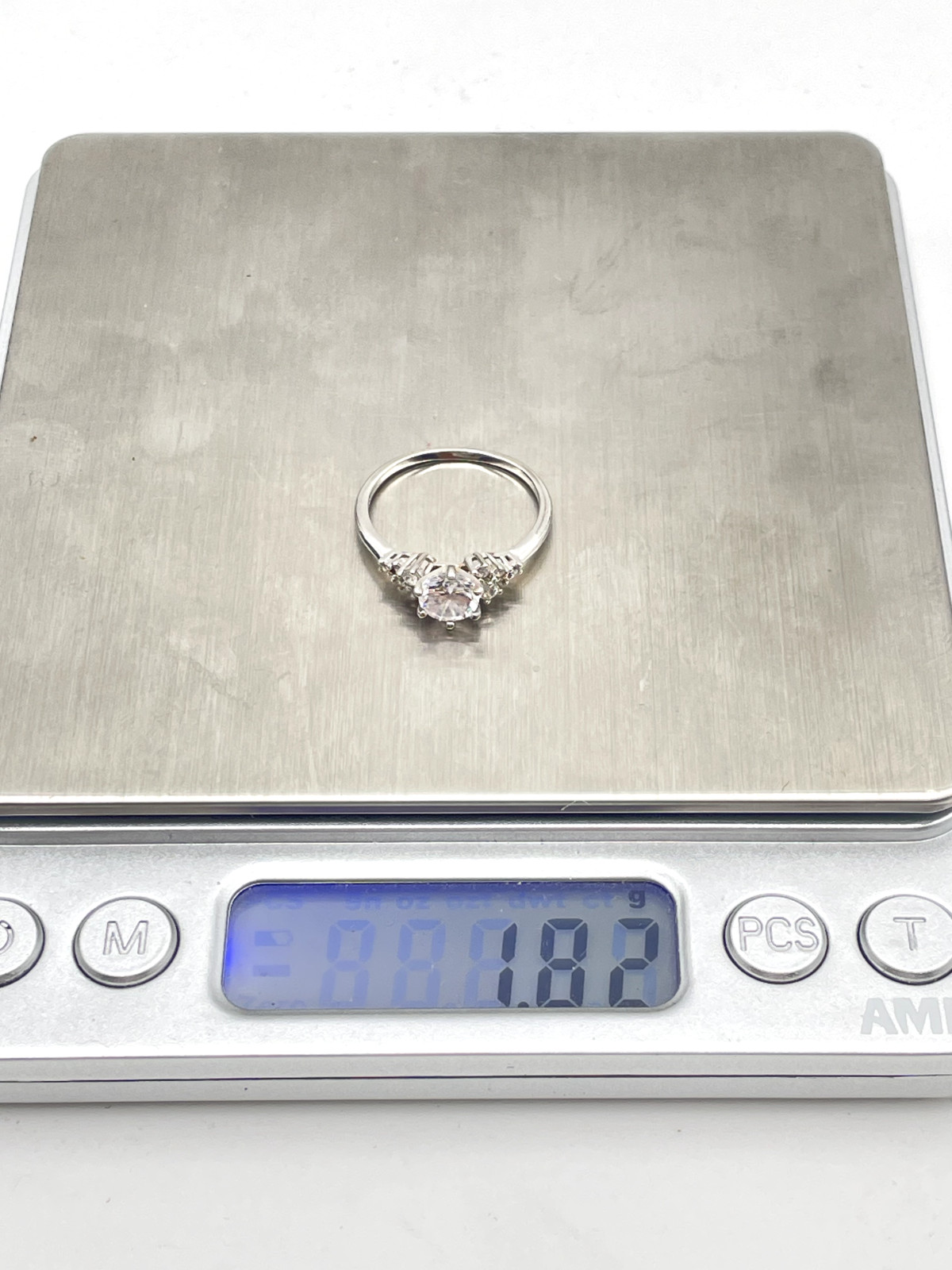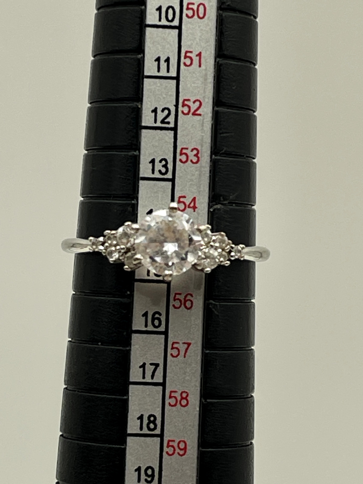 как выглядит STERLING SILVER 925 WHITE ROUND GEMSTONE 1mm BAND SIZE 7.25 RING 1.8g фото
