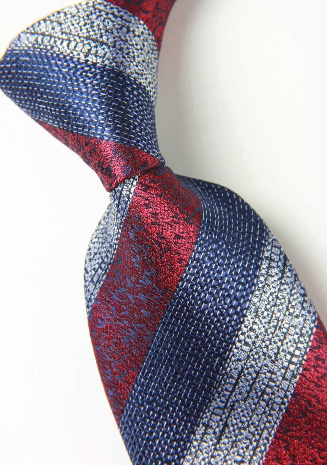 как выглядит New Classic Striped Red Blue White JACQUARD WOVEN 100 Silk Men