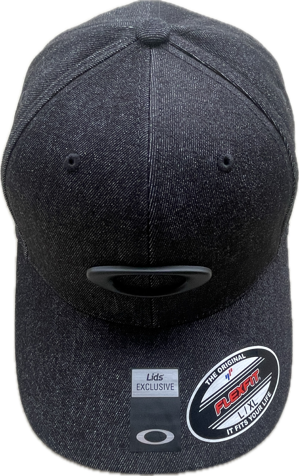 как выглядит Oakley TinCan Hat Baseball Cap Black Denim Metal Logo Flex Fit Men