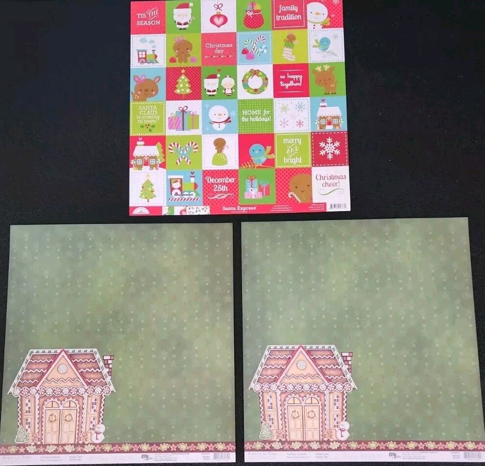 Christmas Theme 12x12 Scrapbook Paper 9 Single and 3 Double Sided Sheets