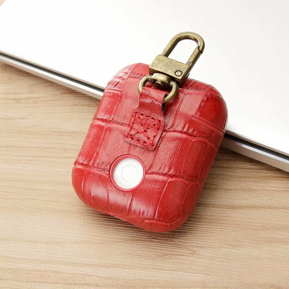 Alligator Pattern Full Grain Cowhide Leather Case Circular Hook for Airpods