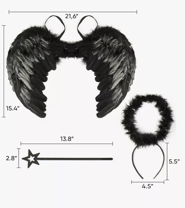 Funcredible Angel Wings and Halo Set - Angel Costume Set - Black Feathers