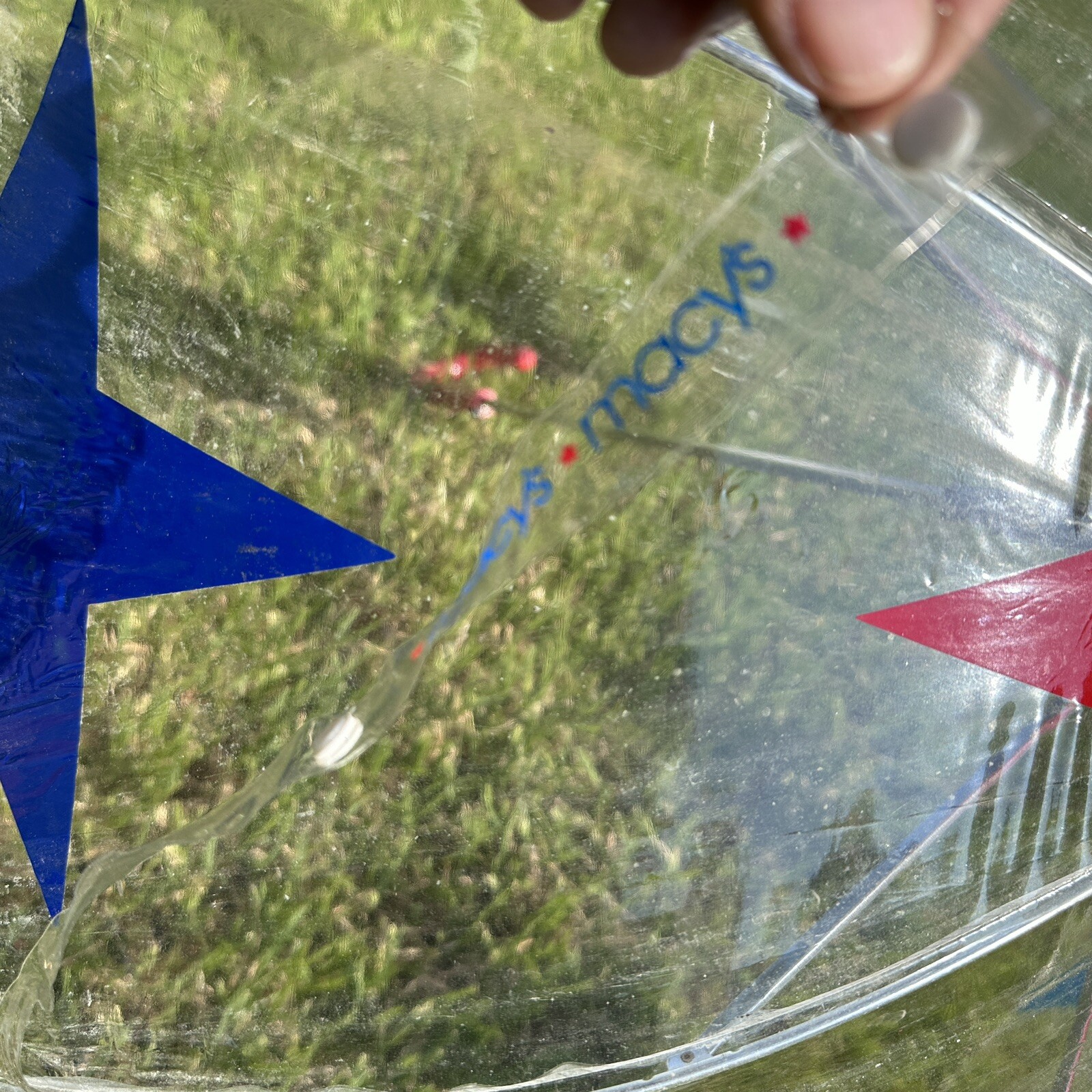New Vintage MACY's Hand Rain Umbrella Clear Classic Red Blue Stars Patriotic
