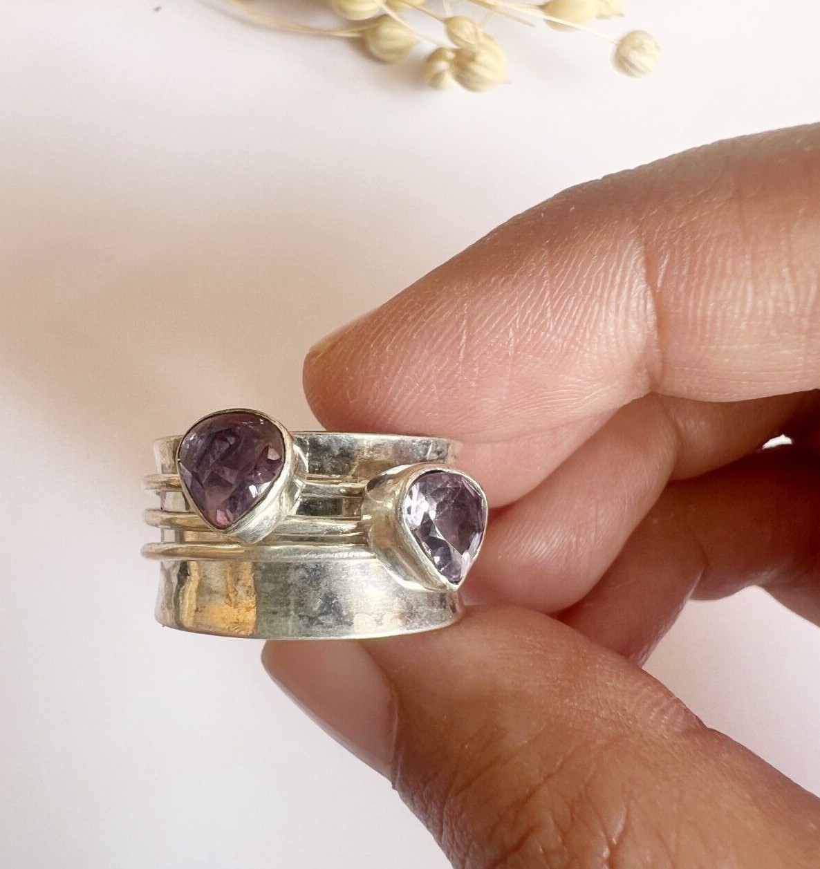 Amethyst Spinner Ring For Women 925 Sterling Silver Ring For Wedding Anniversary