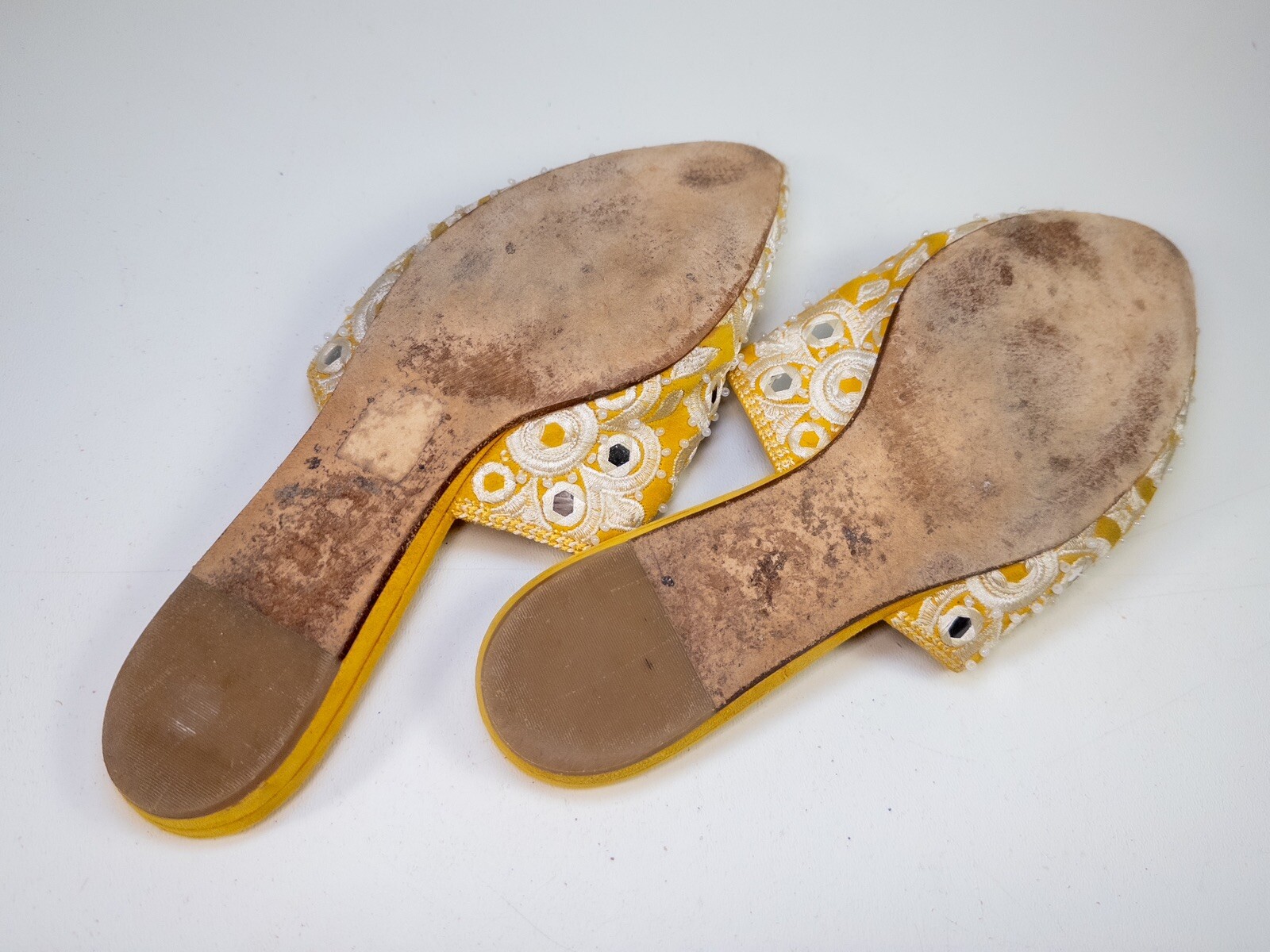 как выглядит TORY BURCH Elora Suede Embellished Flat Mule Slides, India Gold Size 7 фото