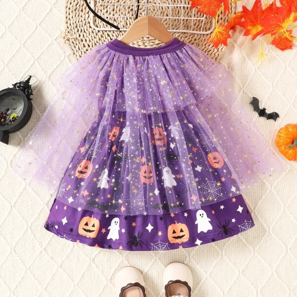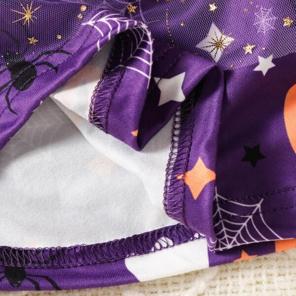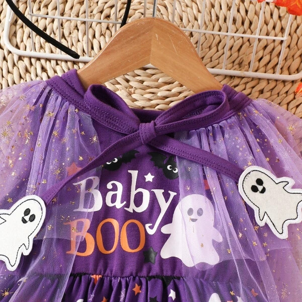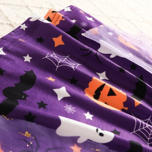 Baby/Toddler Girl Halloween 2pcs Pumpkin Ghost Print Vest Dress