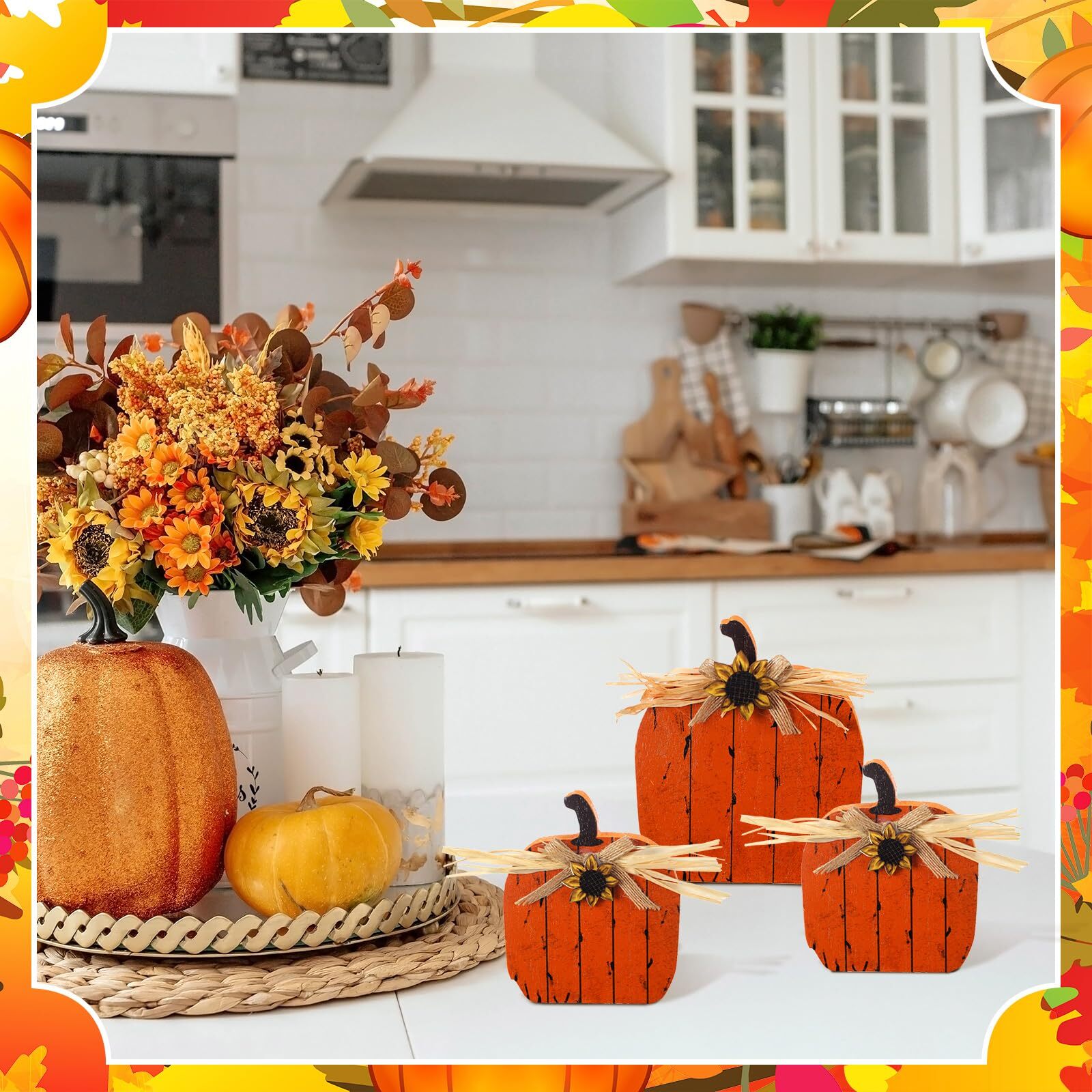 3 Pcs Fall Decorations for Home Fall Wooden Pumpkin Table Sign Thanksgiving P...