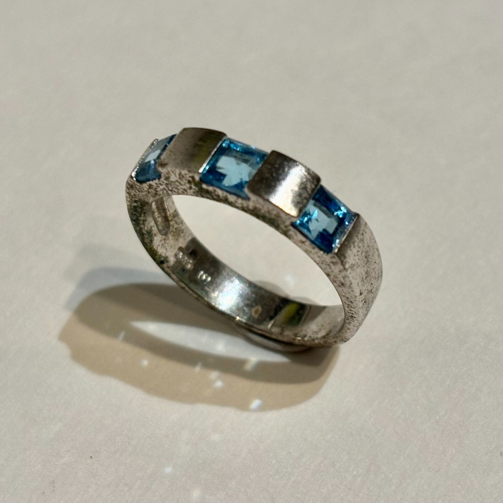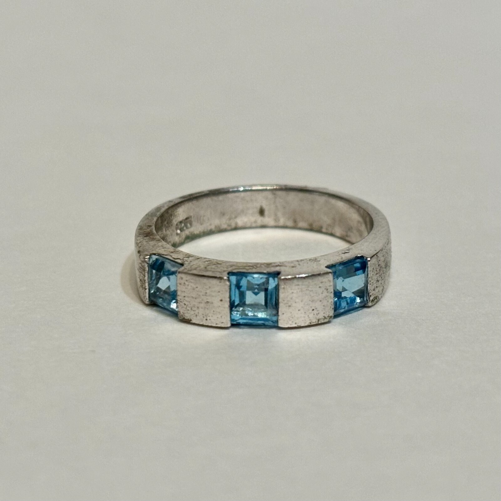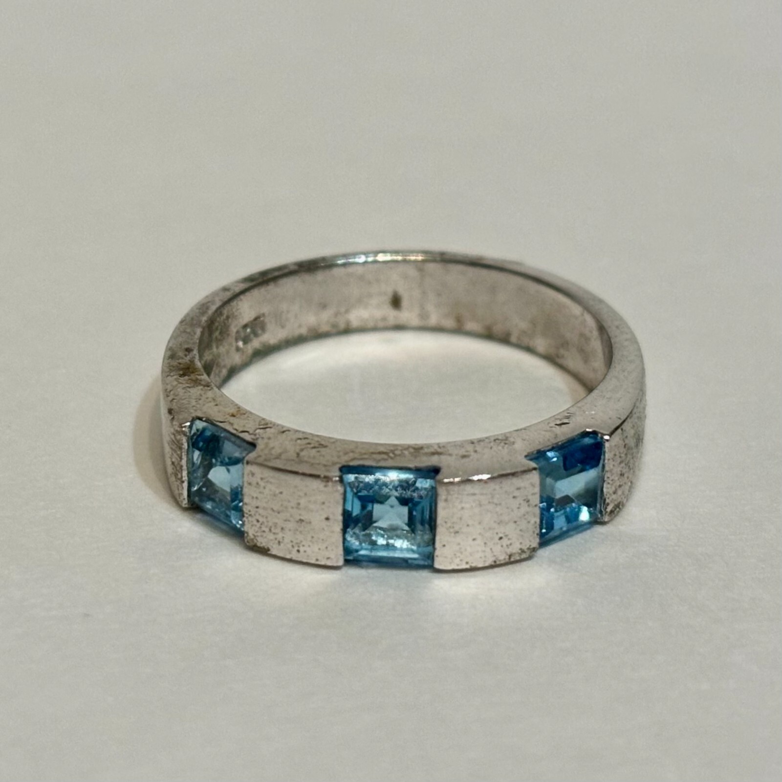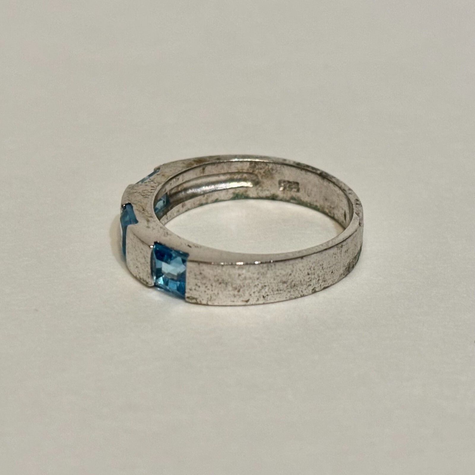 как выглядит Princess Cut Blue Topaz Gemstones Sterling Silver 925 Channel Set Ring Size 7.5 фото