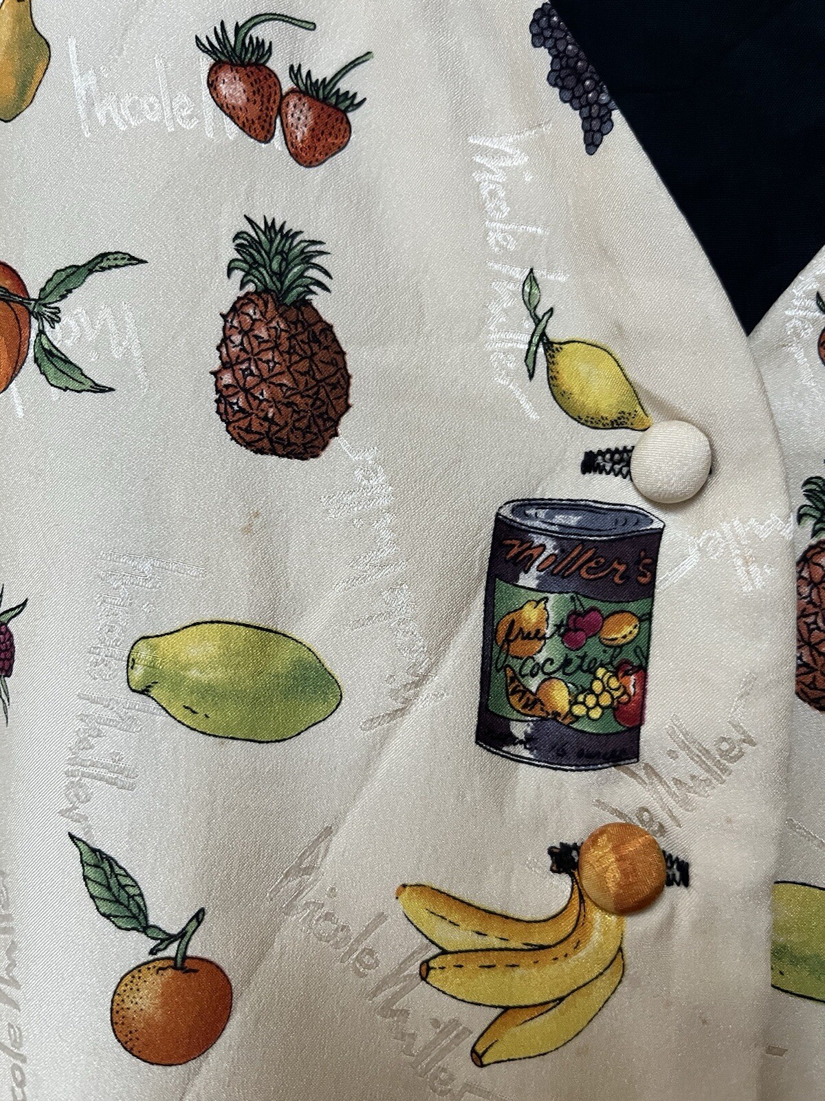 Vintage Nicole Miller Silk Vest Rare-Fruit Salad-XL