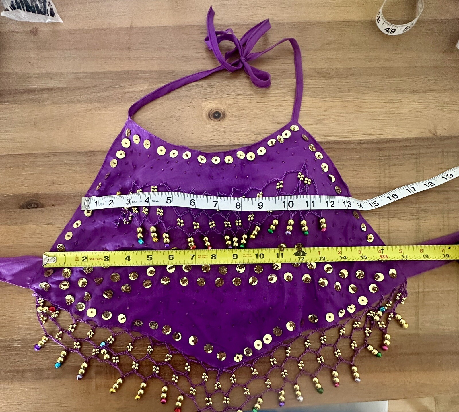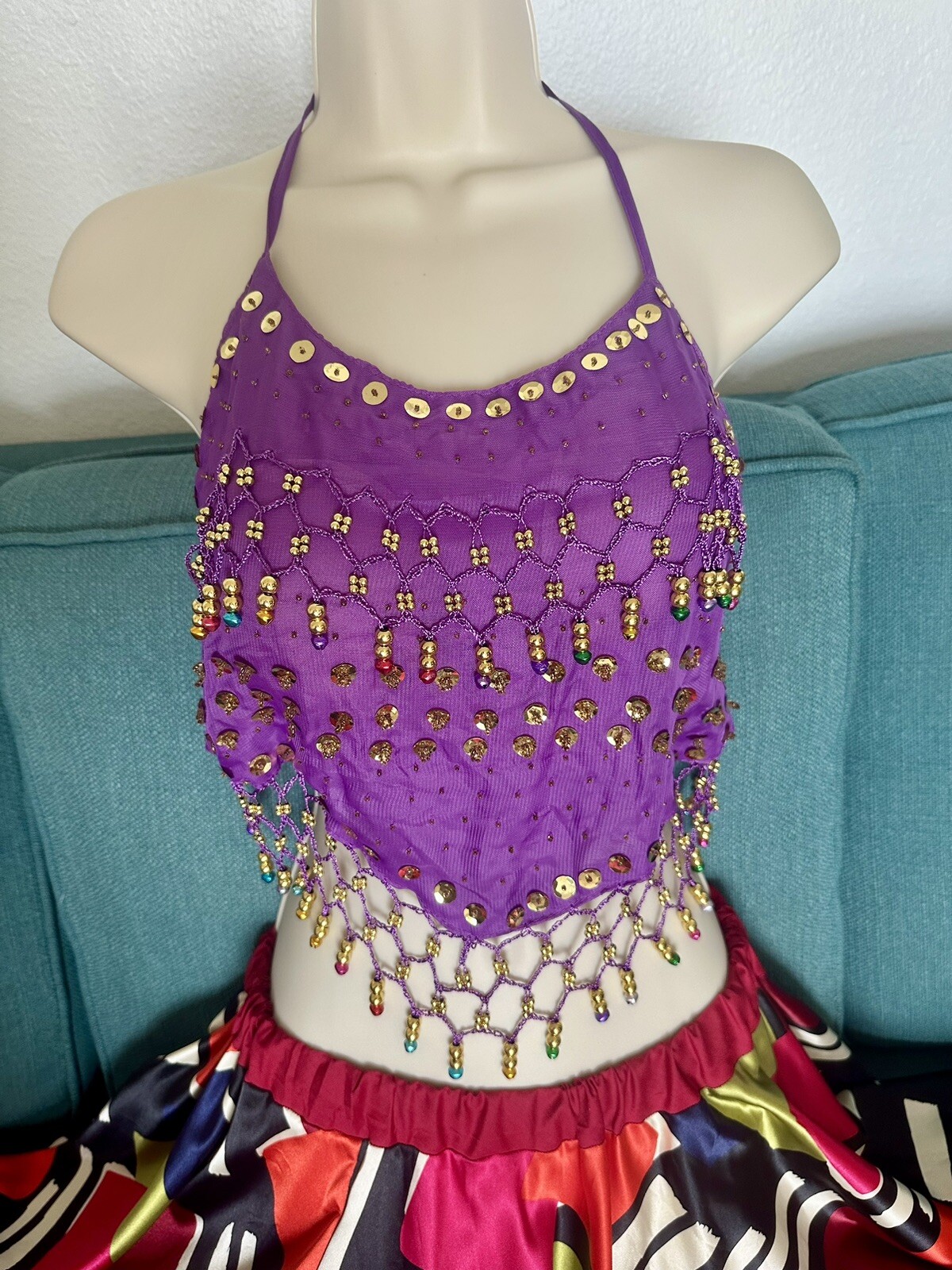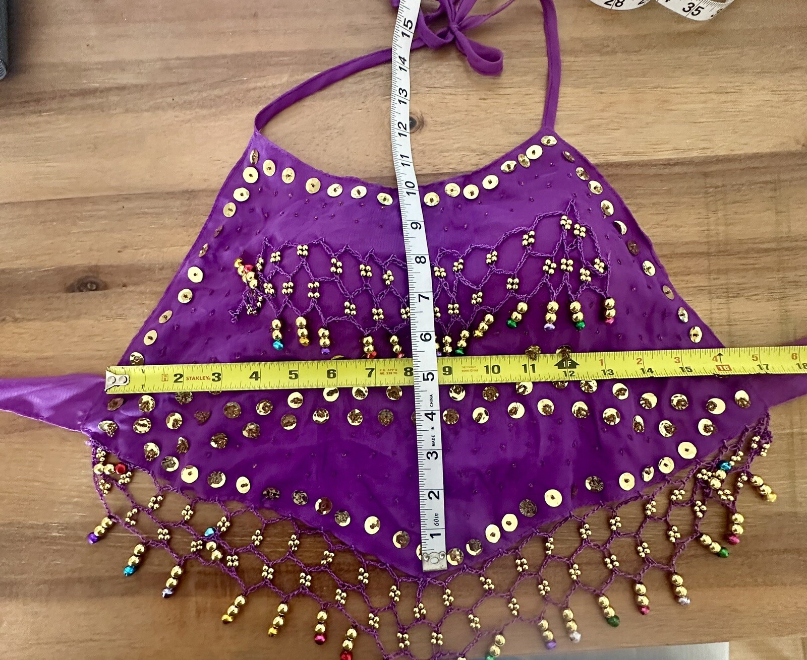 Women s BellyDance Set Of 2 Sequin Beaded Bra Top Costume Black Purple XS-S New