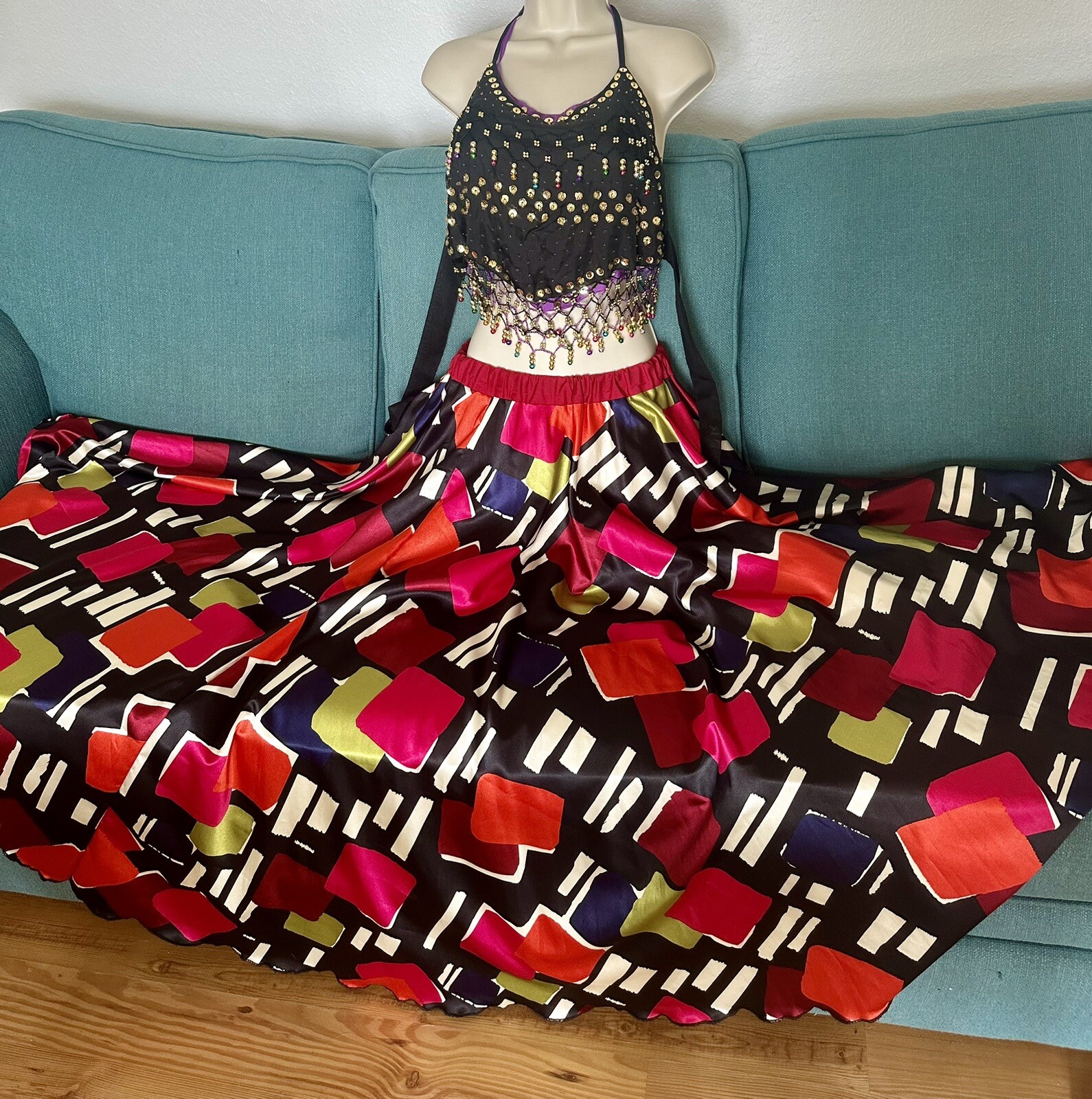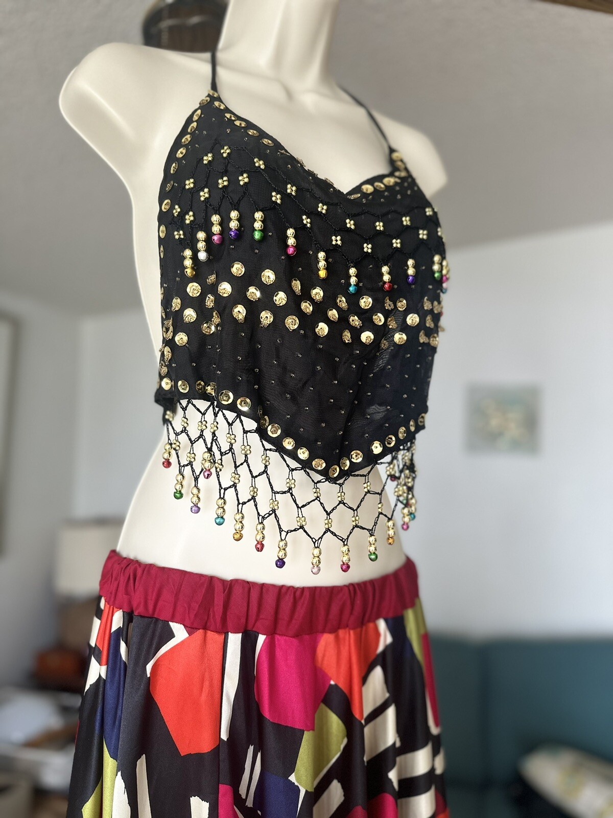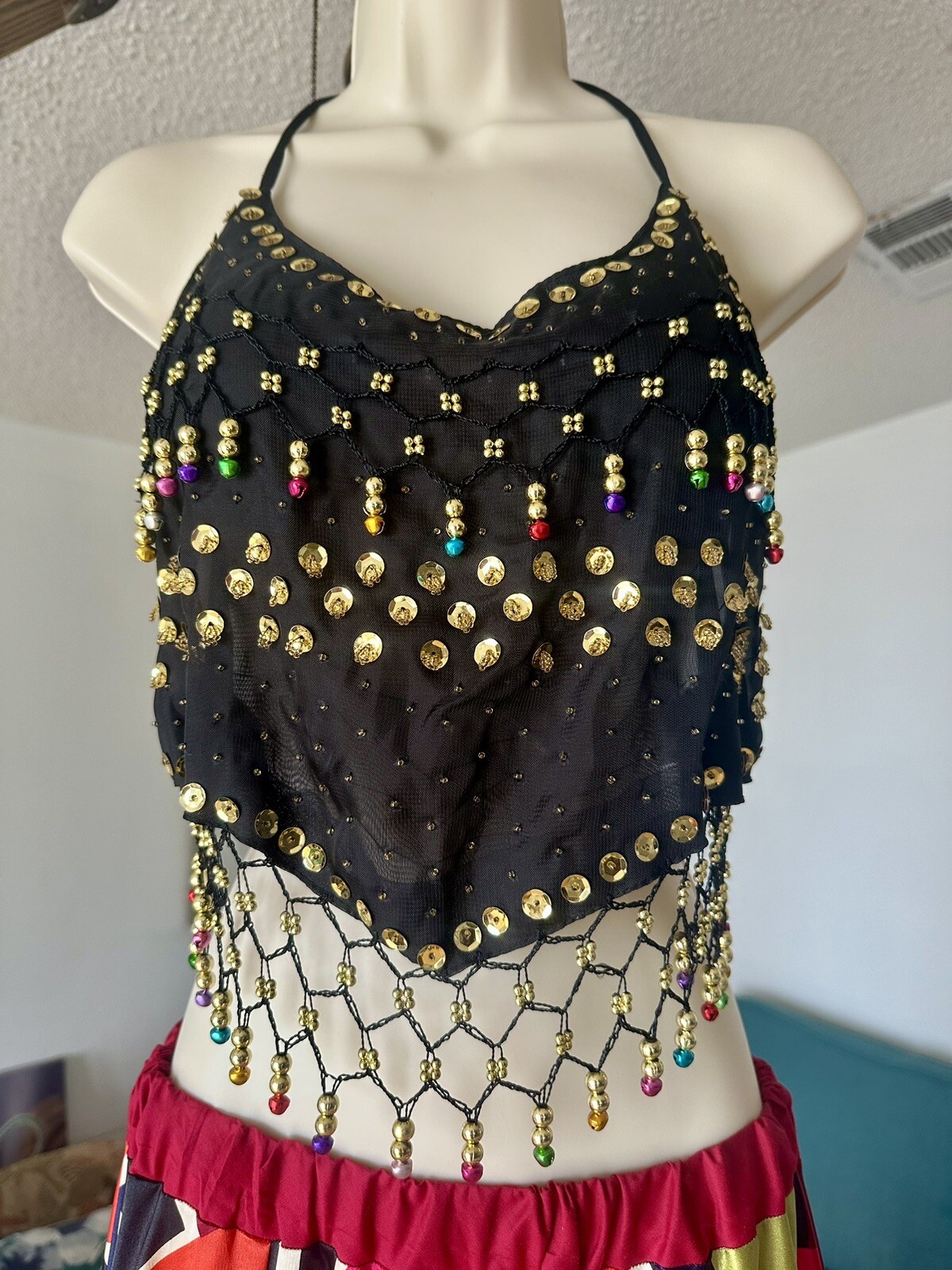 Women s BellyDance Set Of 2 Sequin Beaded Bra Top Costume Black Purple XS-S New