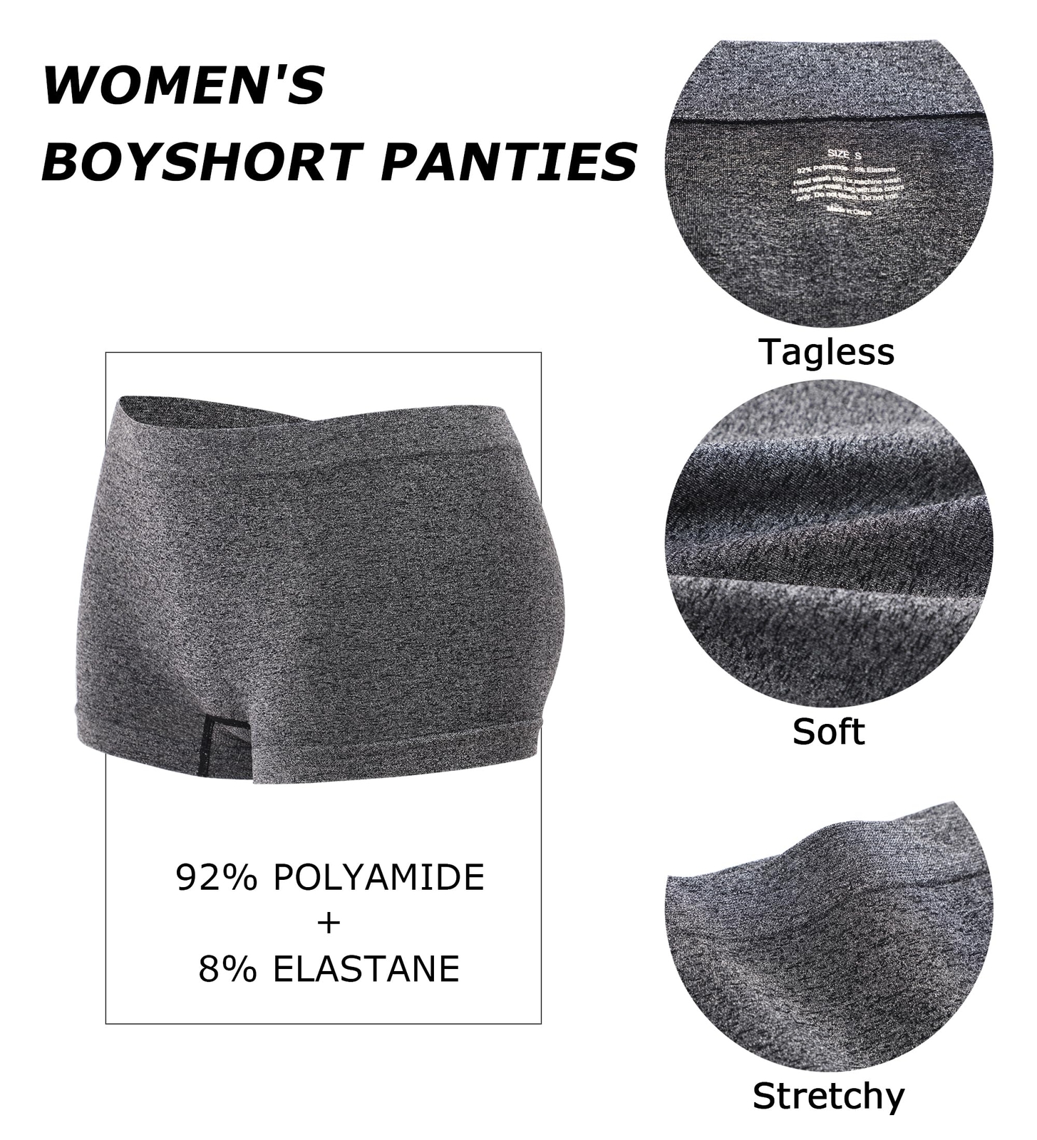 4-Pack Women's Soft Stretch Boxer Shorts:Seamless Full Coverage Boyshorts-size L