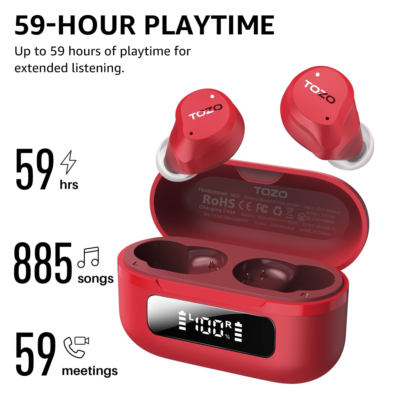 TOZO Active Noise Cancelling Wireless Earbuds with LED Display Charger Case IPX8