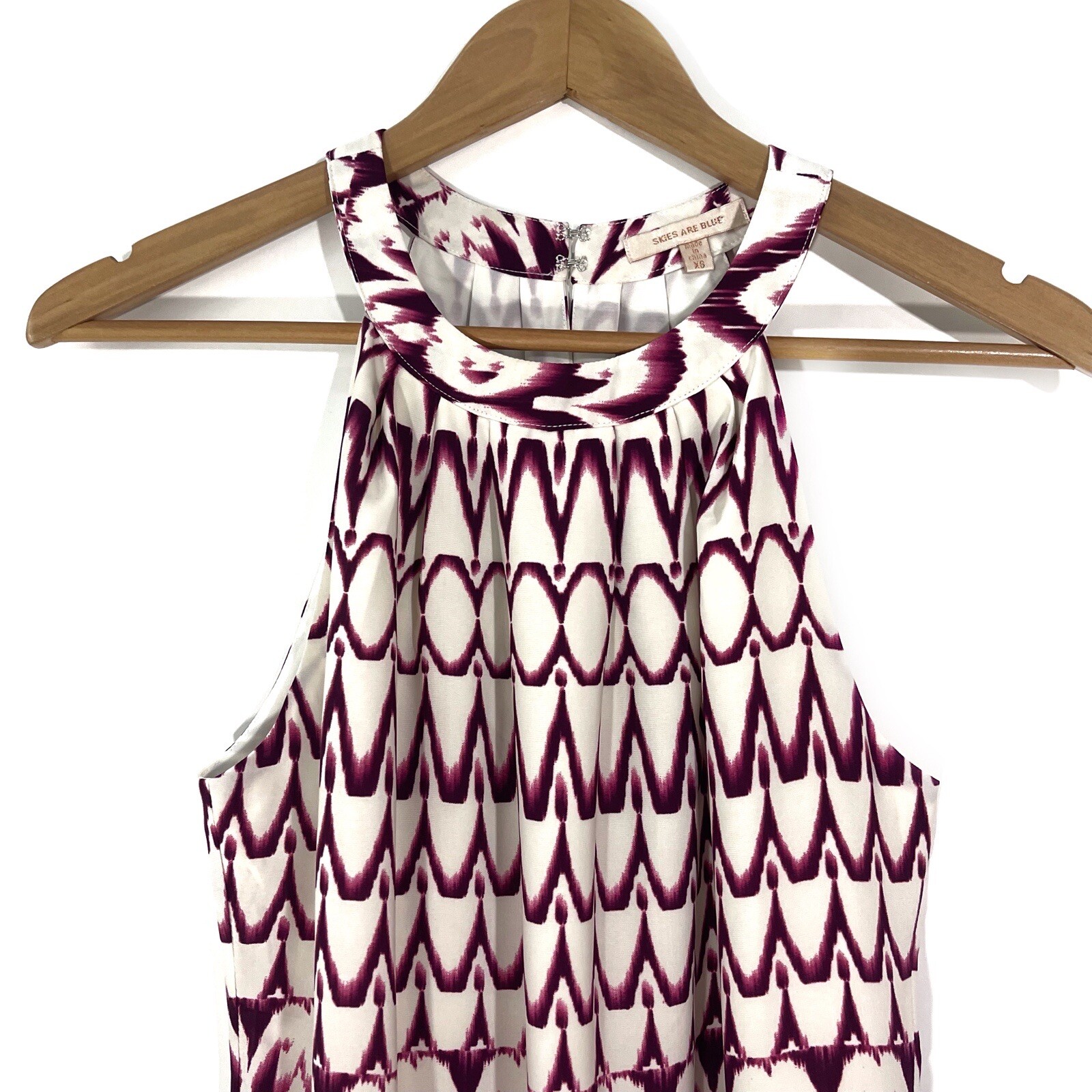 как выглядит Skies Are Blue Women s Size XS Purple White Ernest Print Mini Shift Boho Dress фото