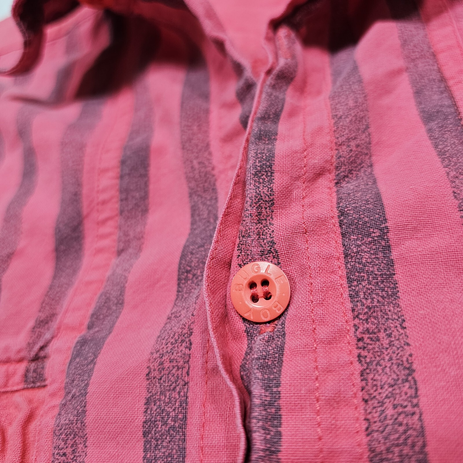 Vtg 90s Bugle Boy Pocket Shirt Mens Small Striped Distressed Baggy Boho Casual