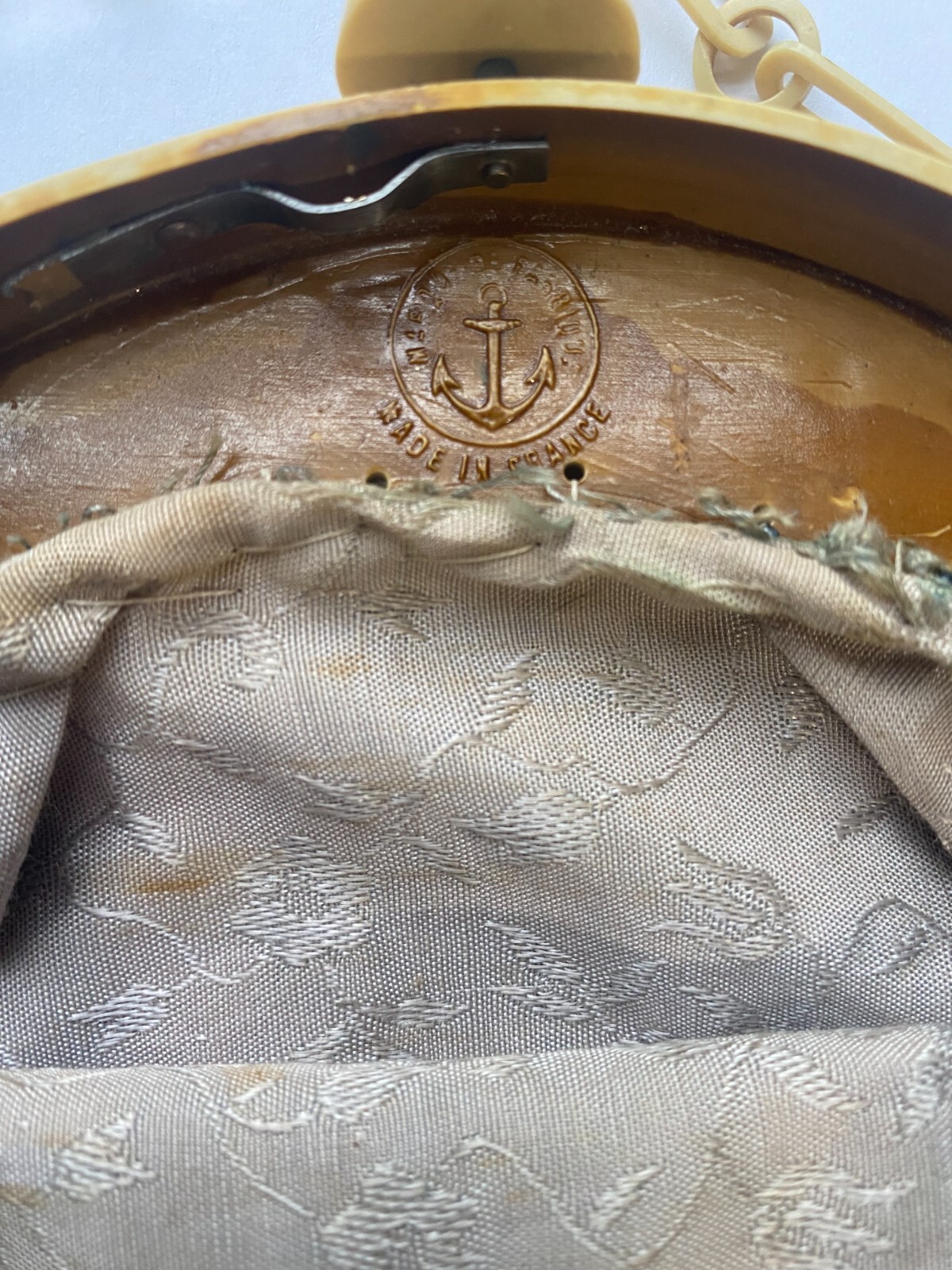 как выглядит Antique Micro Scenic Figural Beaded Purse French Celluloid Frame-Tiniest Beads фото