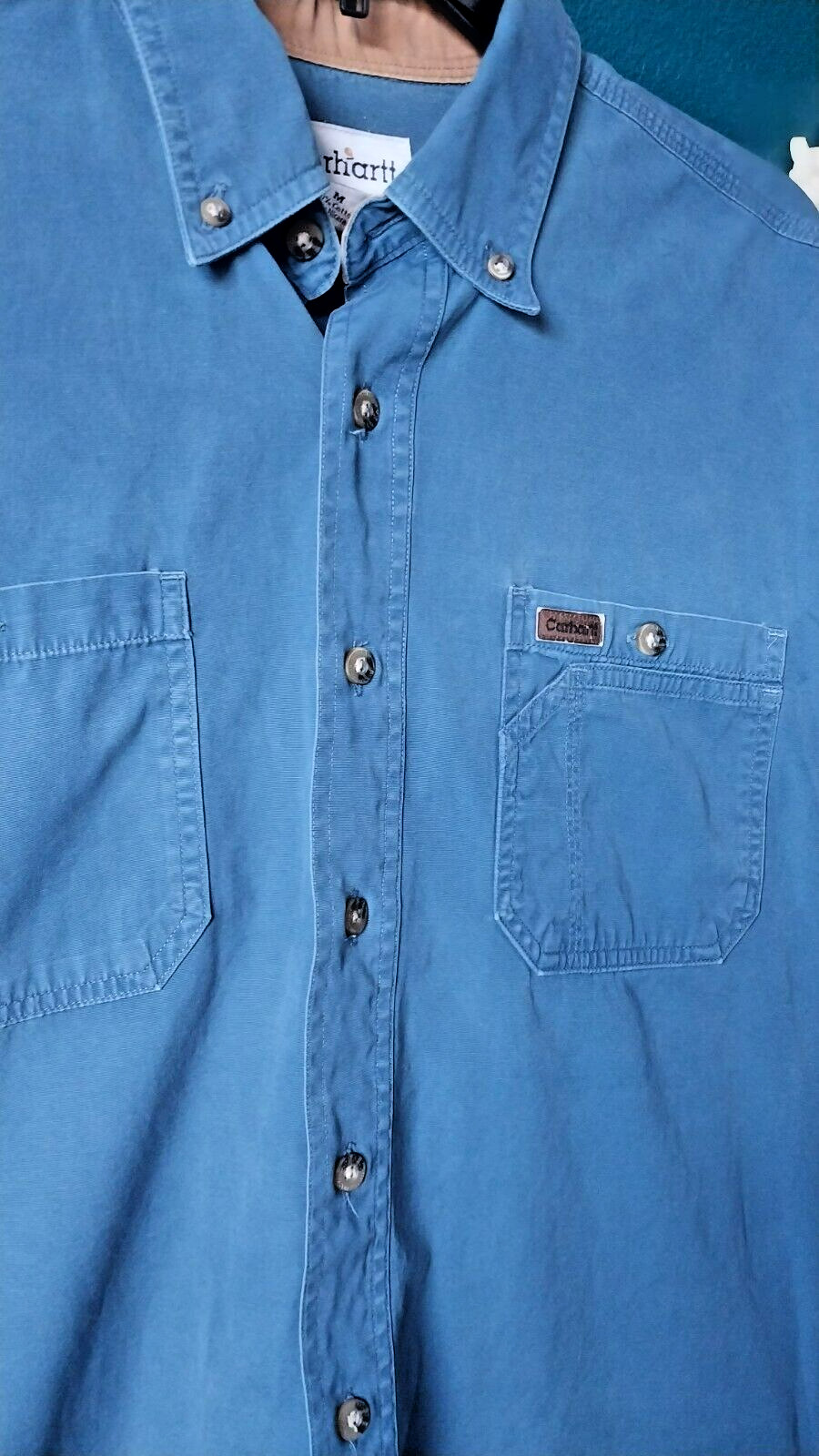как выглядит Carhartt Mens Long Sleeve Button Down Shirt Size Medium Blue фото