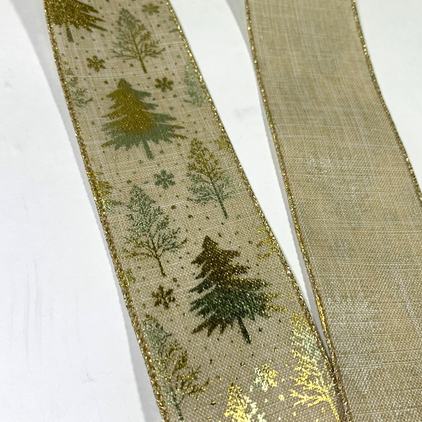Kirkland Wire Edged Gold Ribbon 5 Yards Christmas Trees Decor Bow Gift Wrap 2.5