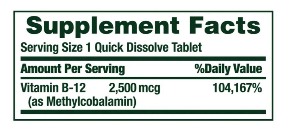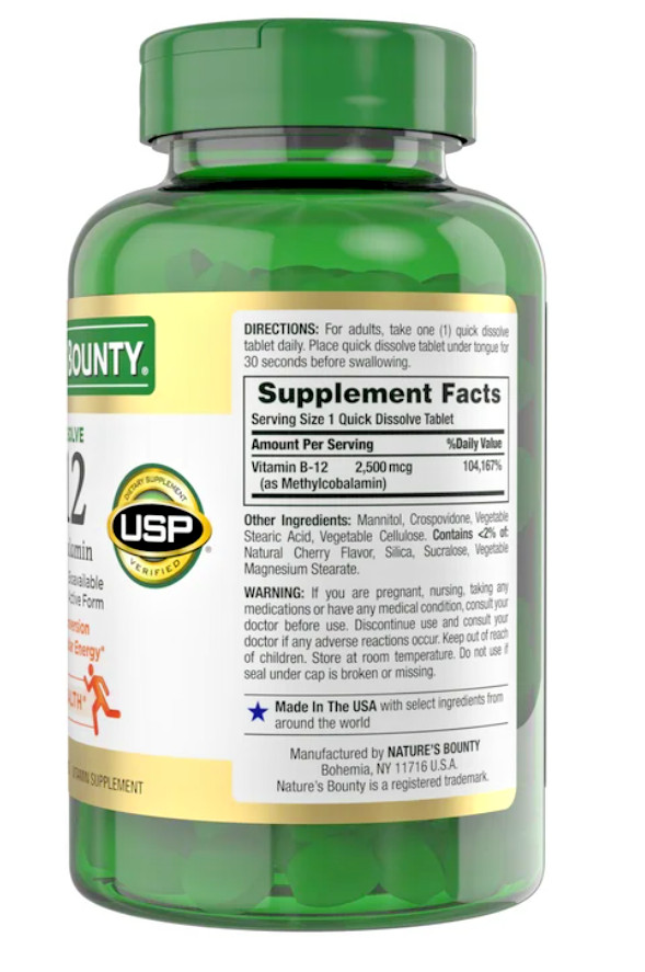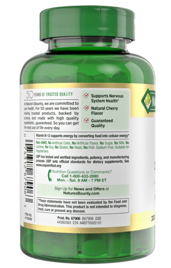 Nature's Bounty Vitamin B-12 2500 mcg, 300 Quick Dissolve Tablets