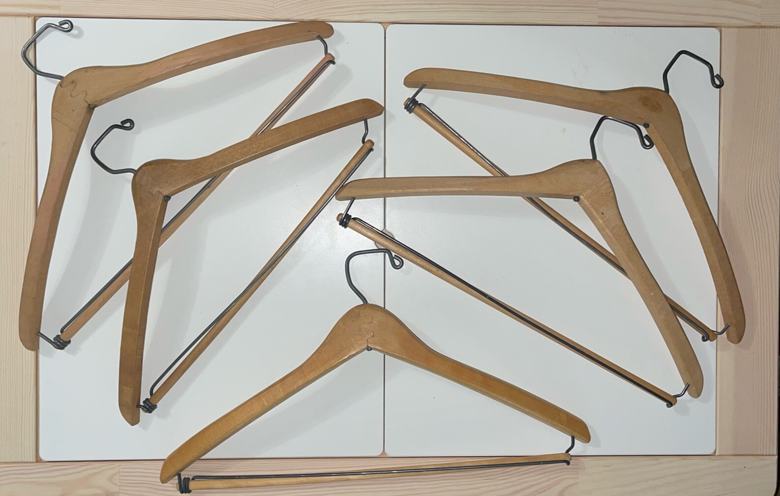 4 Vintage BATTS WISHBONE ANGLE , NAGEL Austin TX Wood SUIT PANT LOCK BAR Hangers
