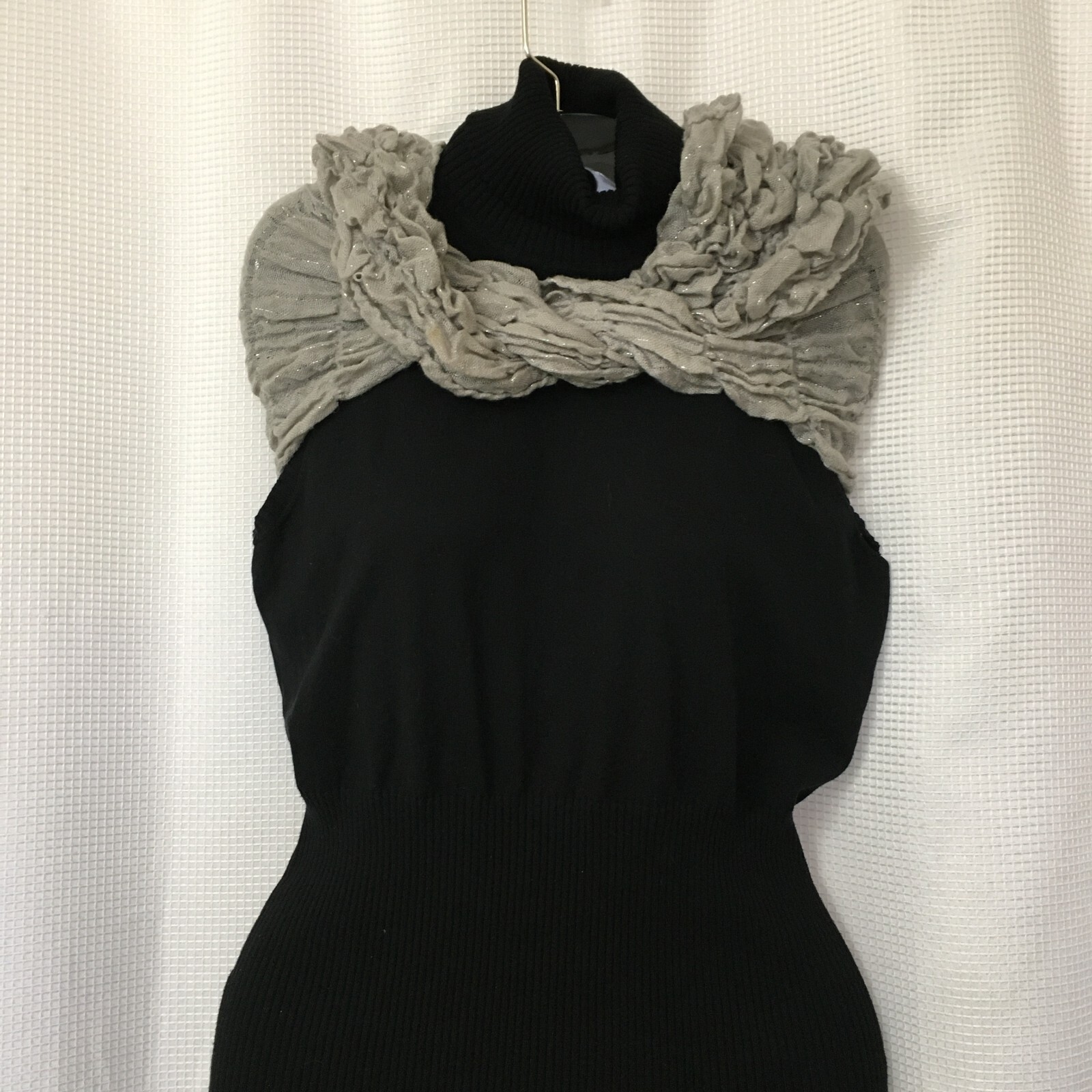 как выглядит Womens Oblong Scarf Shawl Silver Thread Gray Popcorn Knit 70"Lg 8" Wide B4 фото