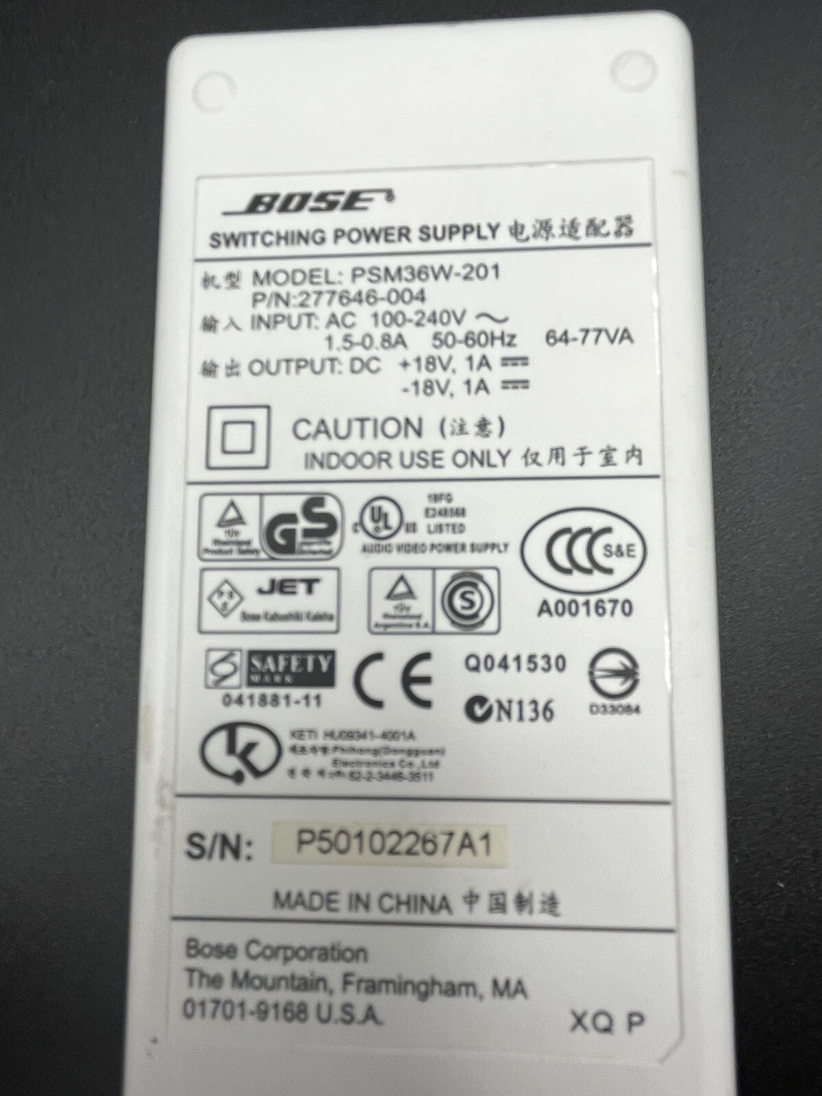 Authentic Bose SoundDock Switching Power Supply Model PSM36W-201 277646-004