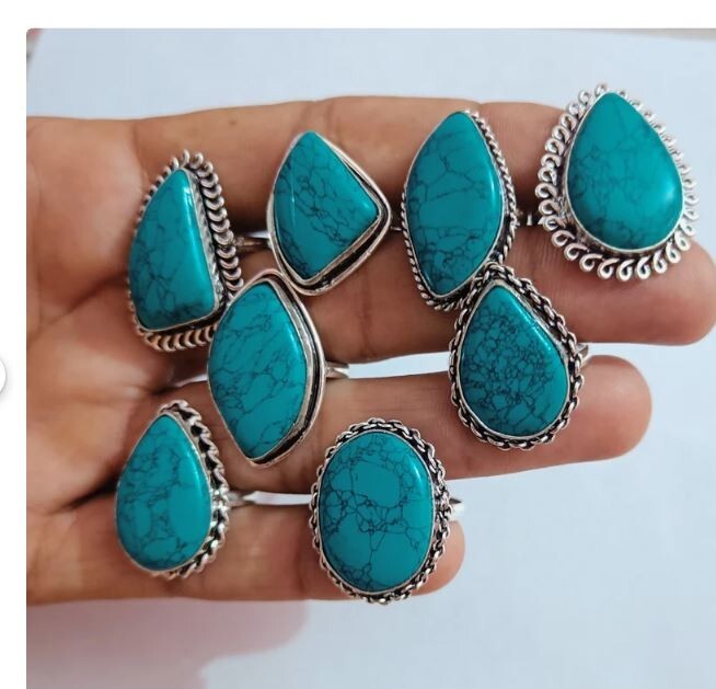Gift Her Turquoise Gemstone 925 Sterling Silver Plated 10 PCs Designer Rings Lot
