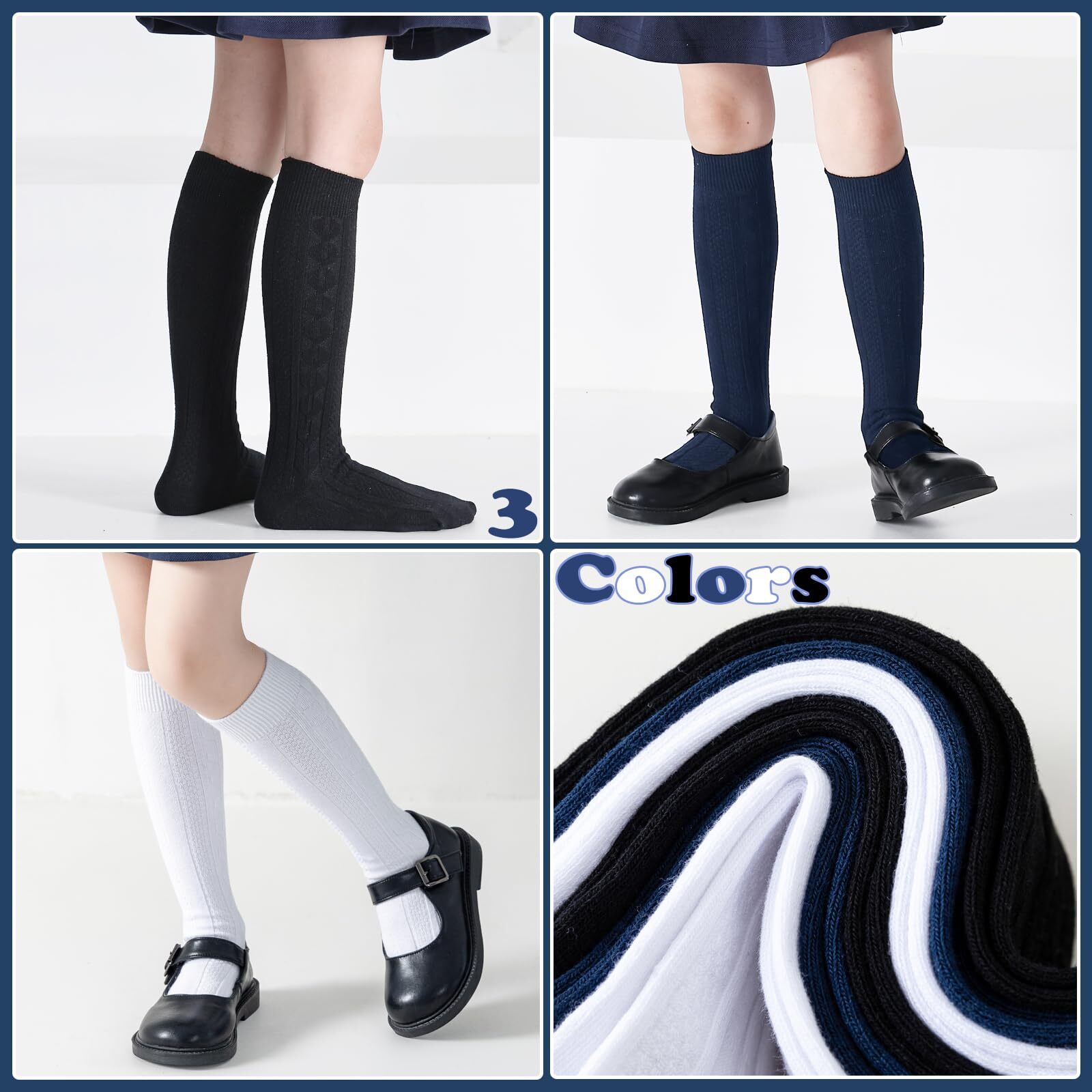 Knee High Socks for Girls White Knee High Socks 10-14 Years Seamless Cable Kn...