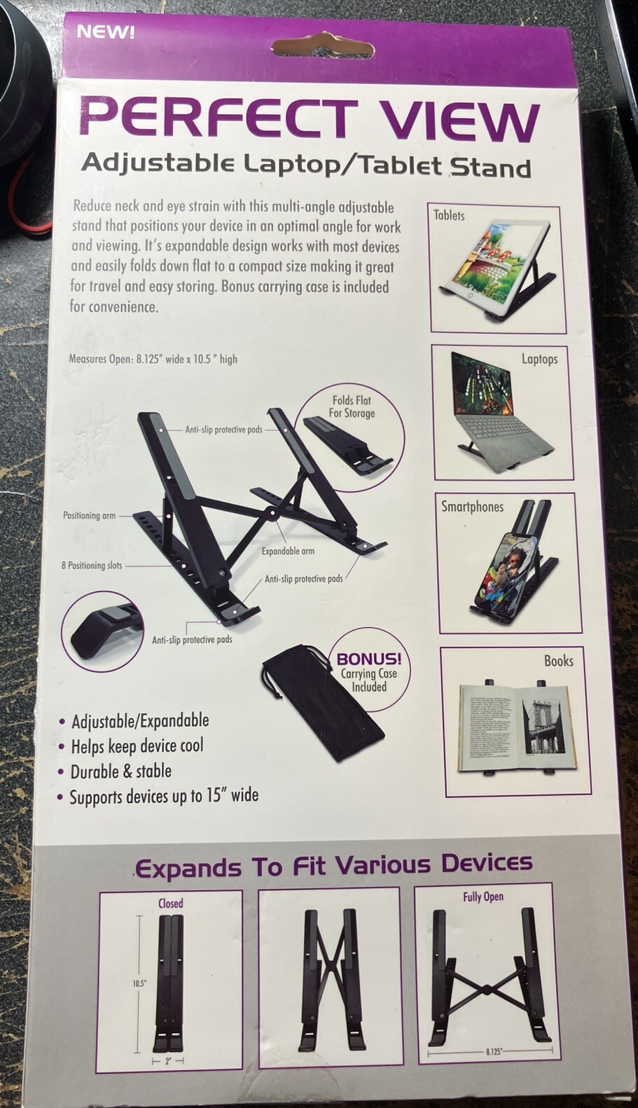 Perfect View Adjustable Laptop and Tablet Stand - Folds Expands for travel NEW