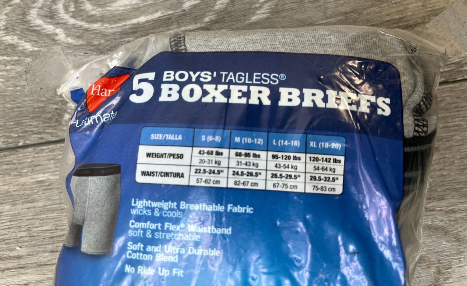 Lot/2 Pkgs 8ct Total Hanes Boys Boxer Briefs, Multicolor, Size L NEW OTHER