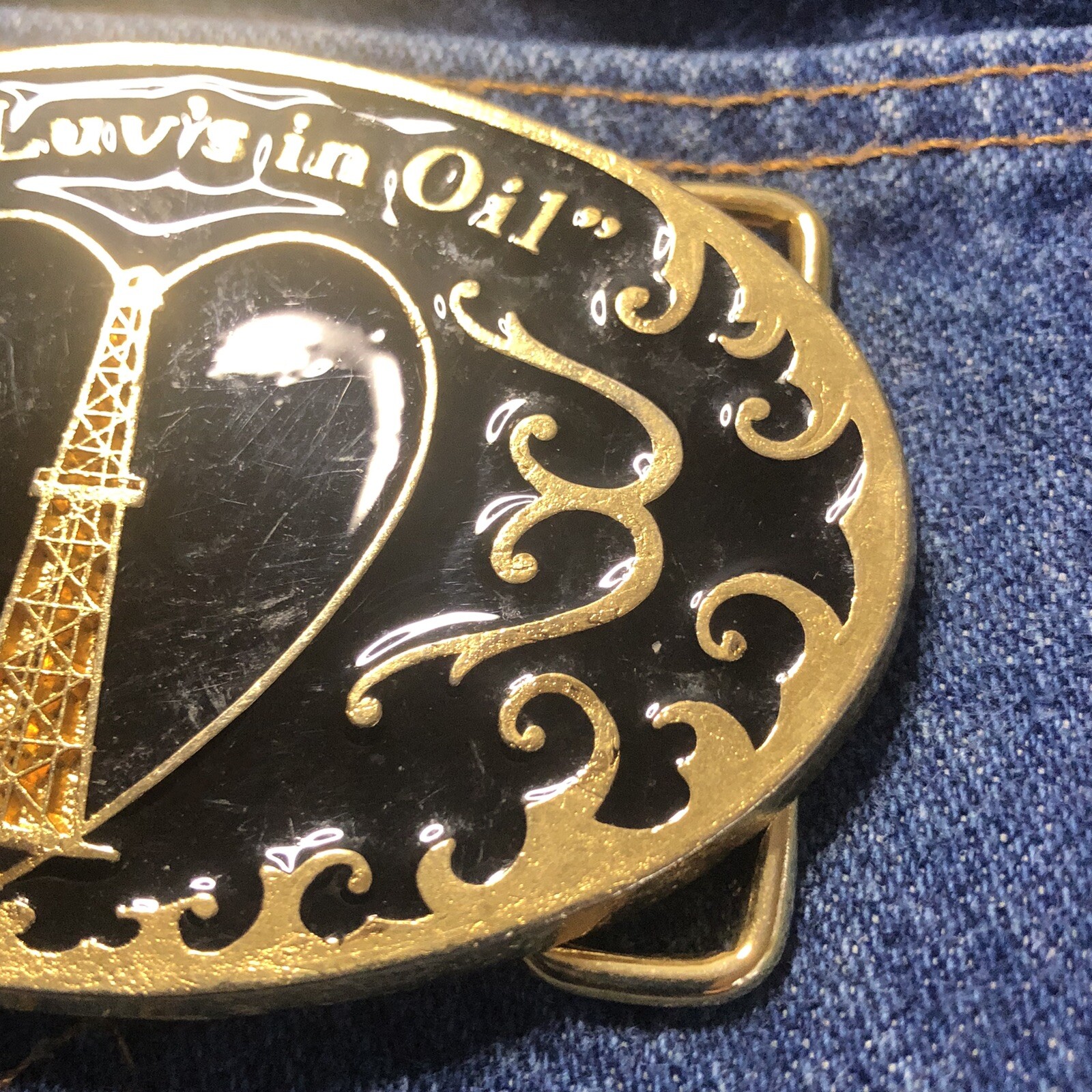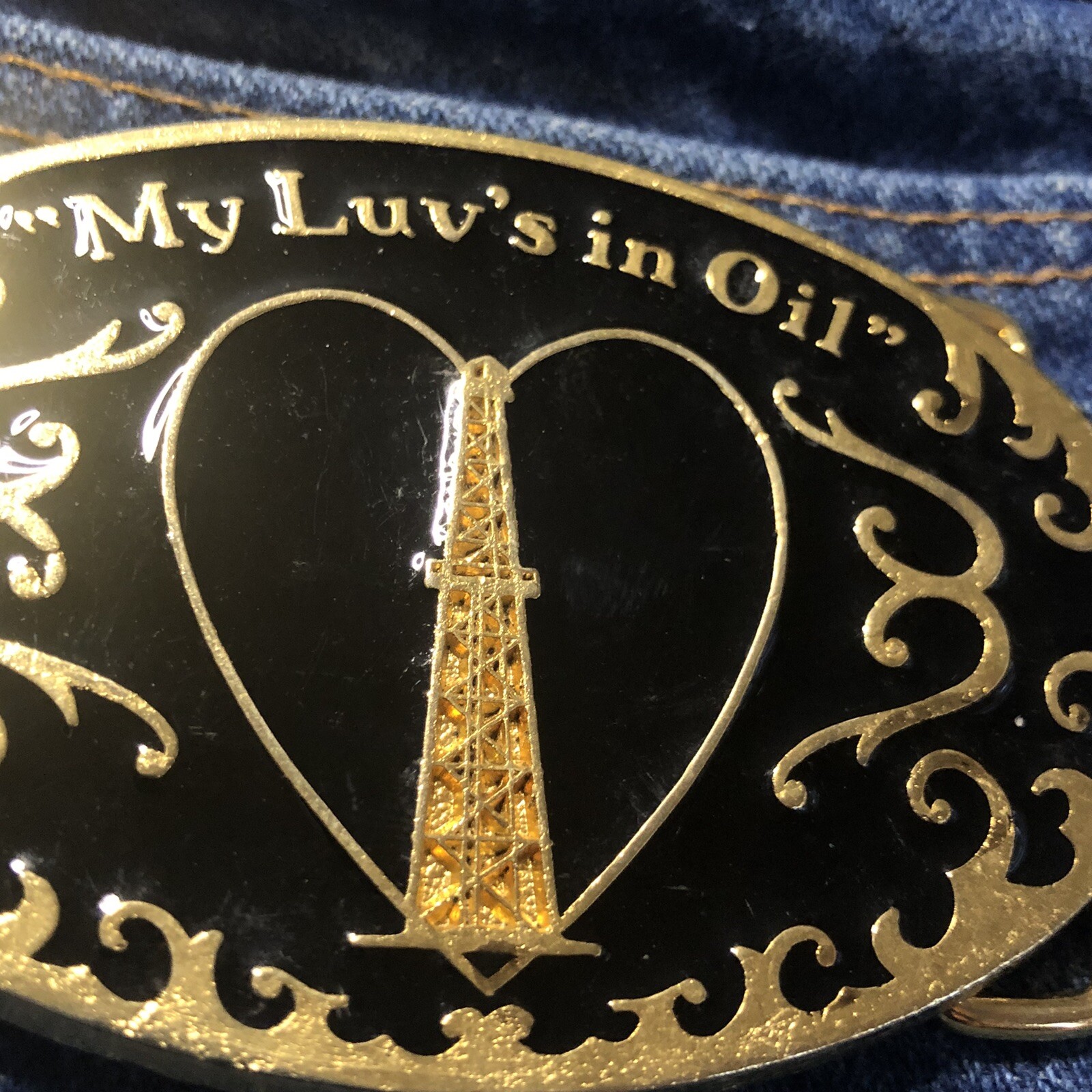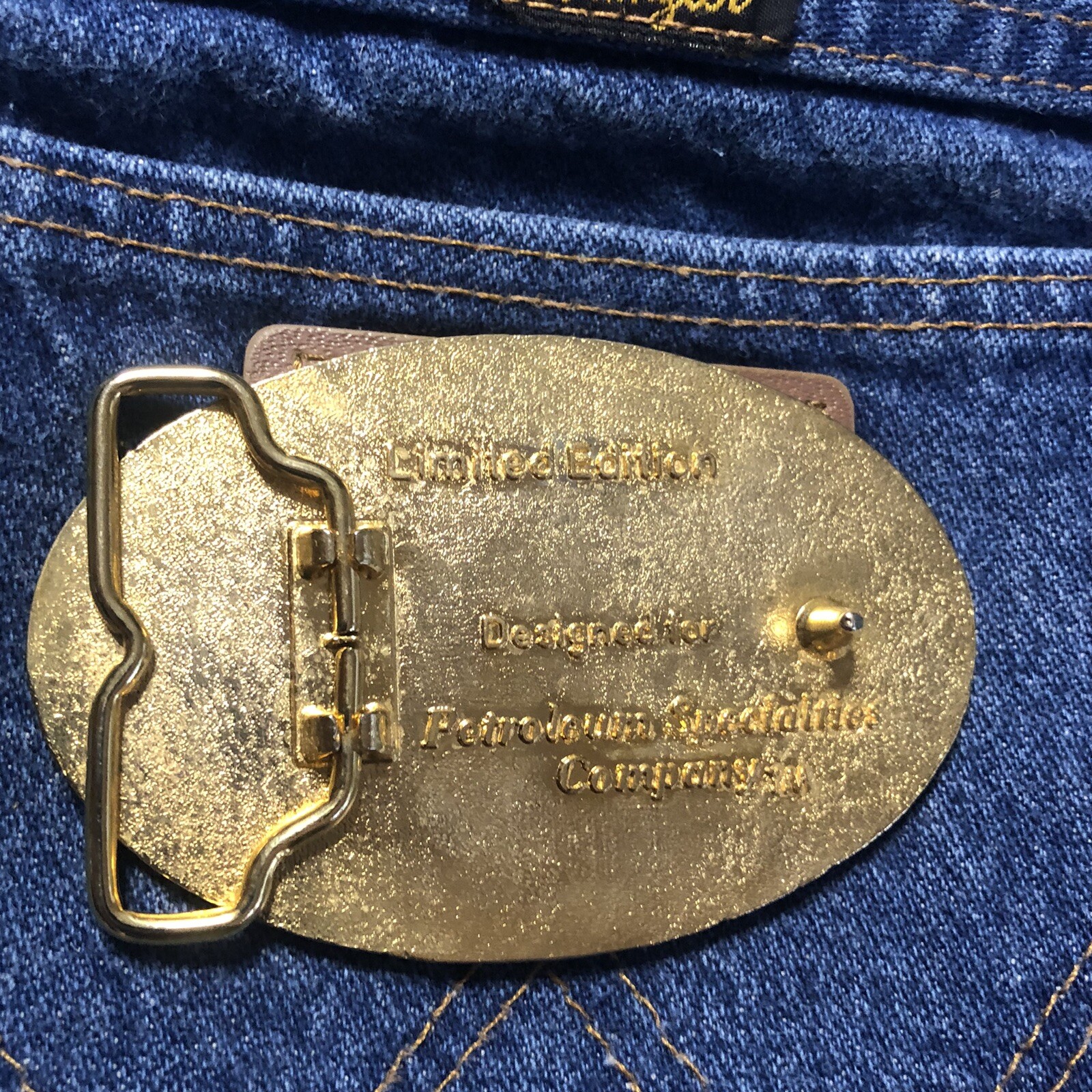 Vintage Belt Buckle OIL FIELD DRILL RIG GAS Garage PETROLEUM SPECIALTIES