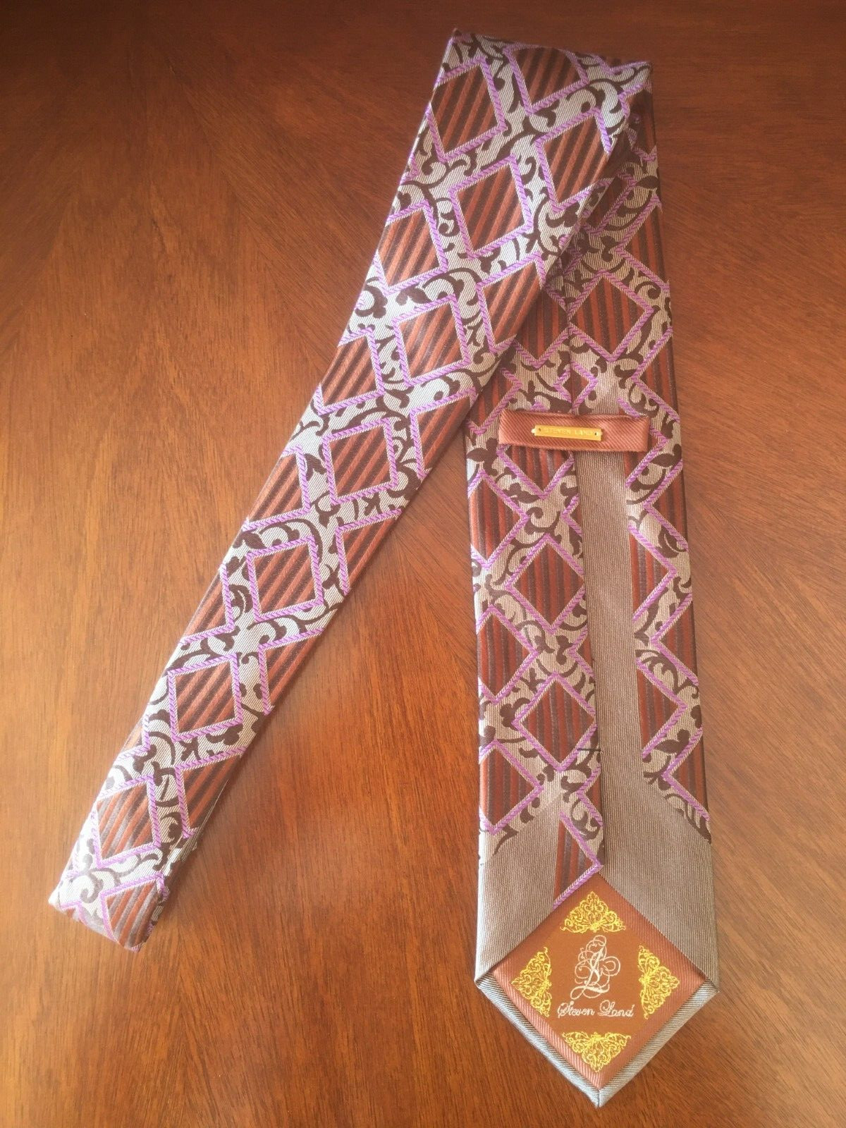 как выглядит Steven Land Square and Geometric Gray / Multicolor Pattern Mens Tie. фото