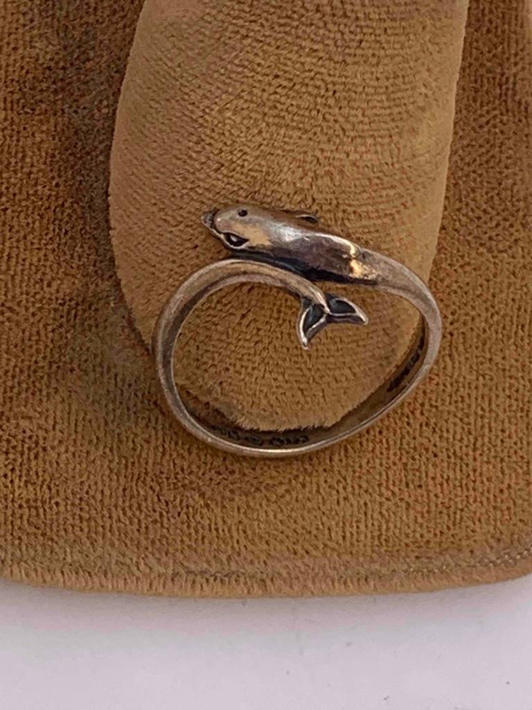 как выглядит Vintage Sterling Silver Dolphin Ring - Size 6 фото
