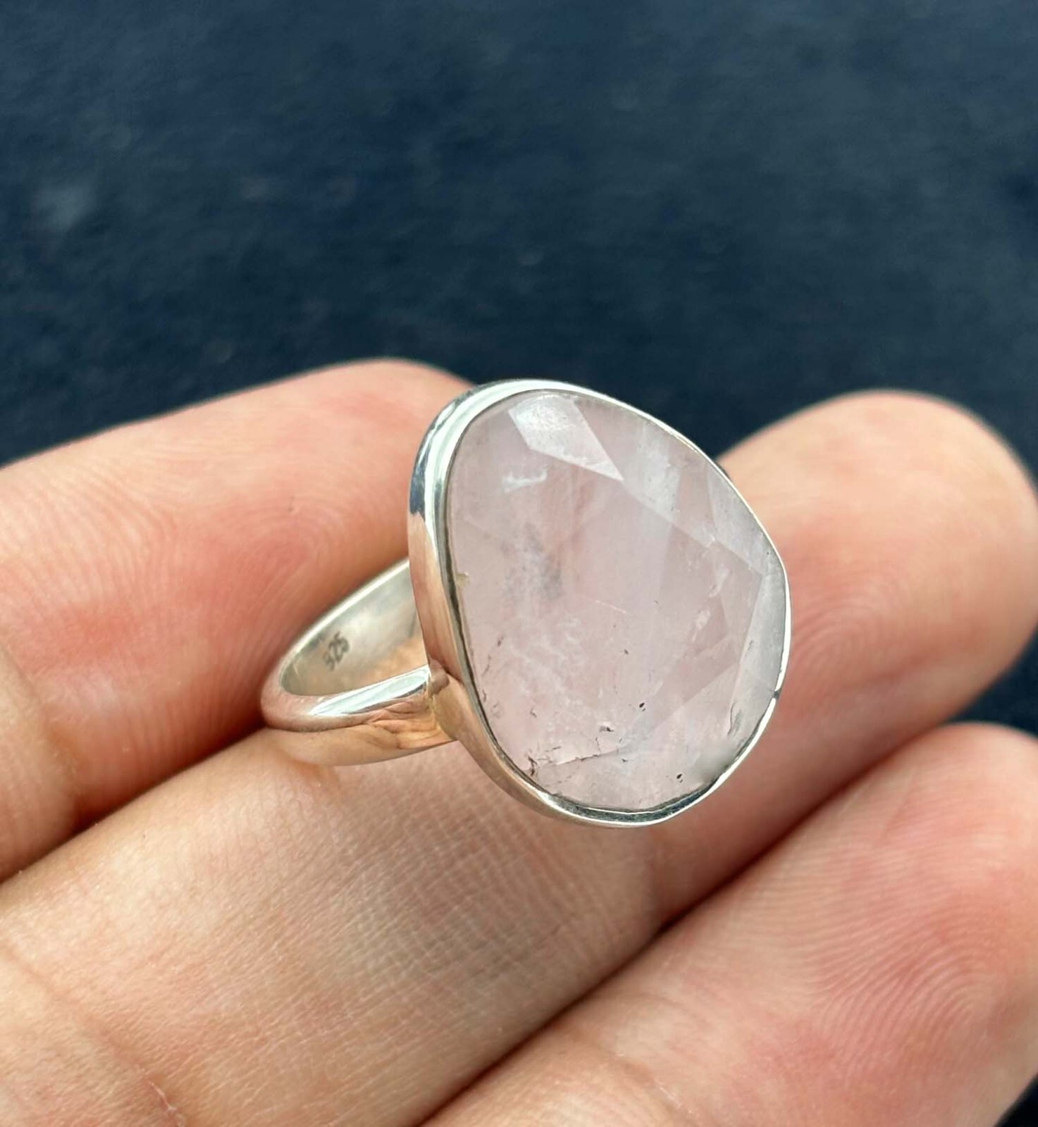 925 Sterling Silver Natural Rose Quartz Handmade Valentine's Ring KJ-335