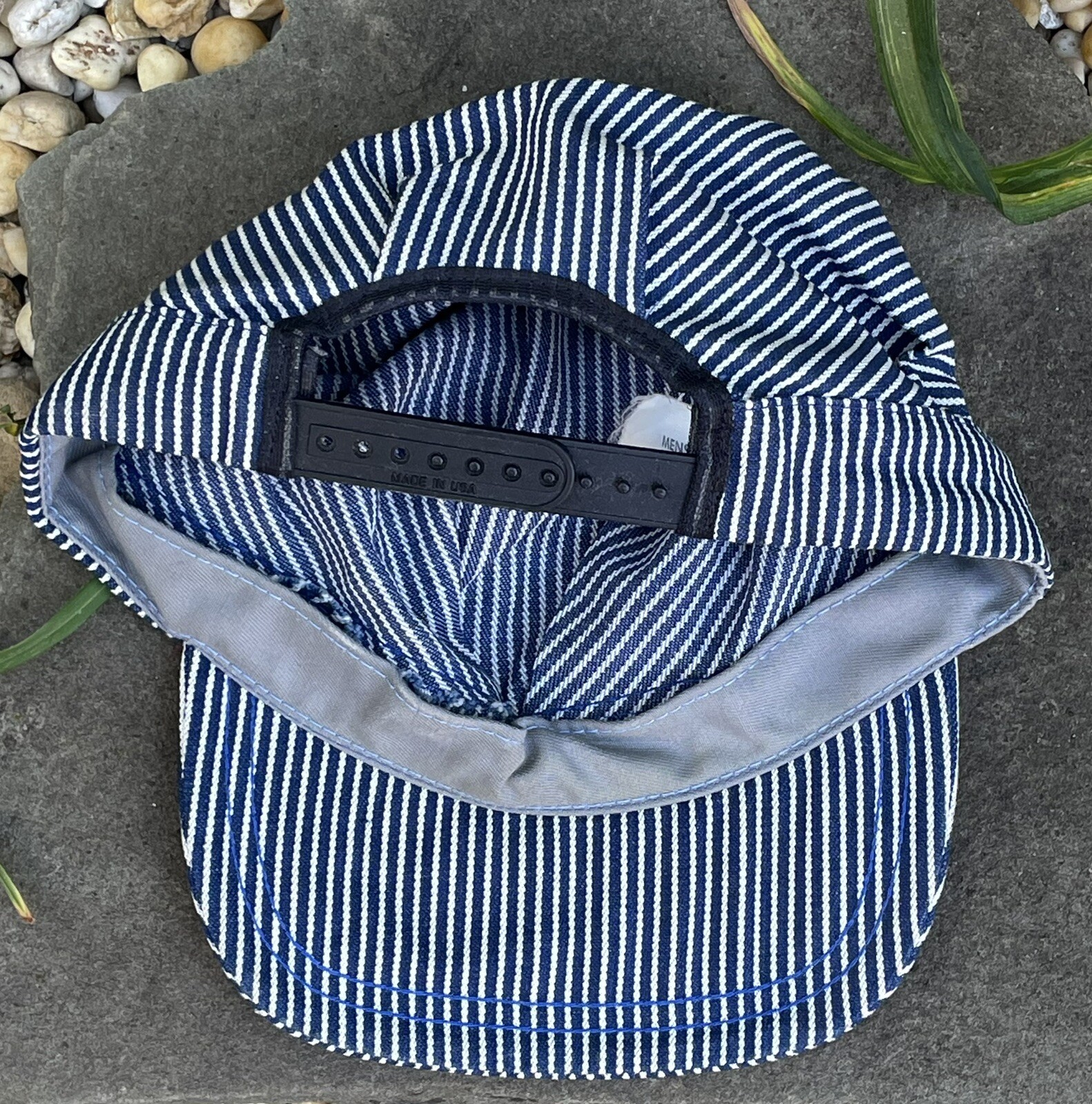 Vintage Railroad Engineer Hickory Stripe Snapback Hat Cap Train Conductor Men