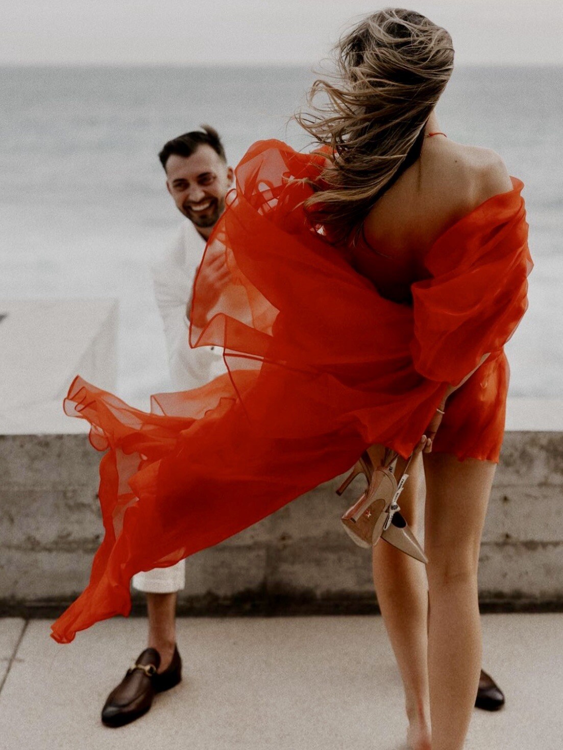 как выглядит NWT 1,850 Zimmermann Natura Tranquility Gather Mini Silk Dress Tomato Red AU2 M фото