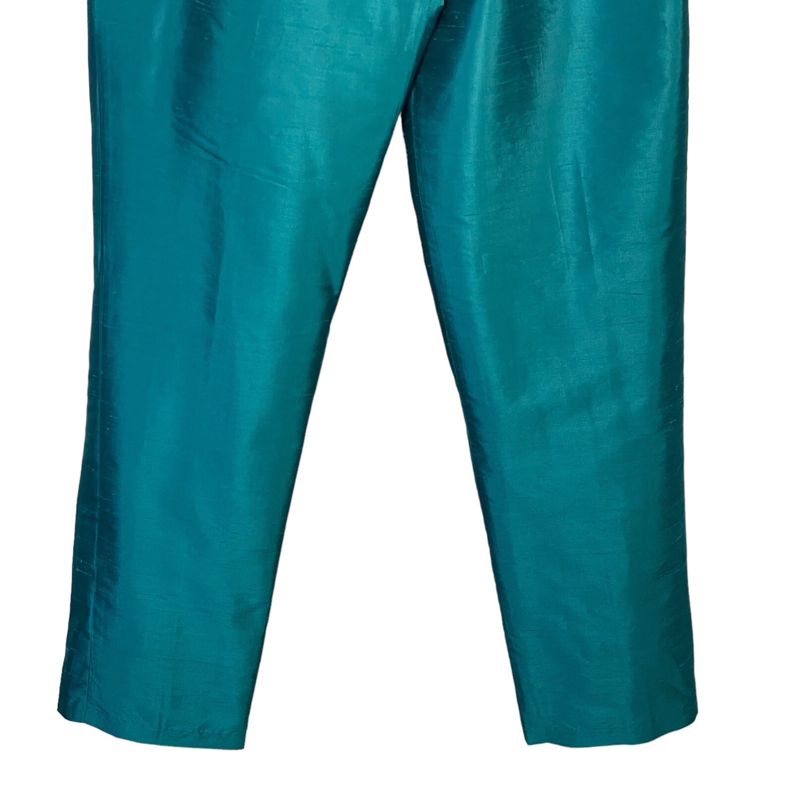 Vintage Bonzaglo 100 Silk Teal Green Lined Side Zip Straight Leg Pants Sz S