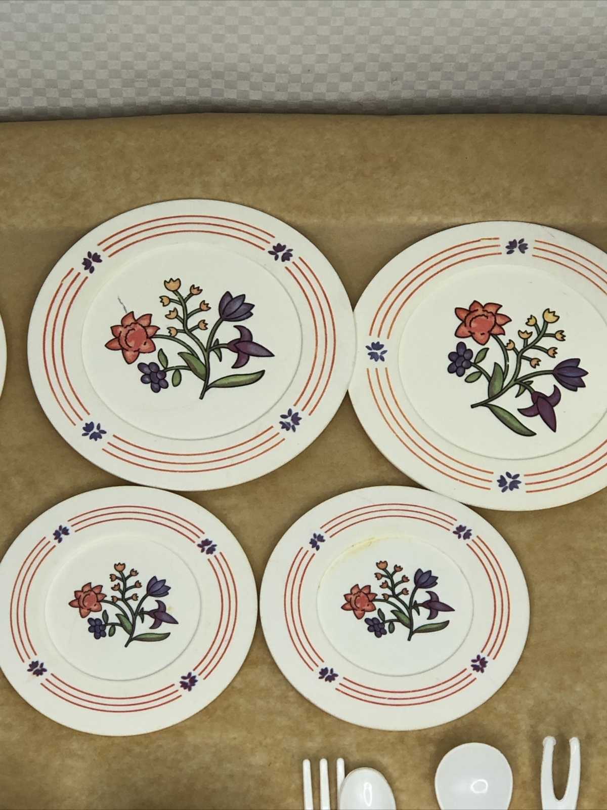 Vtg Chilton Globe Toy Dishes Plastic Floral Set 18 Piece Set
