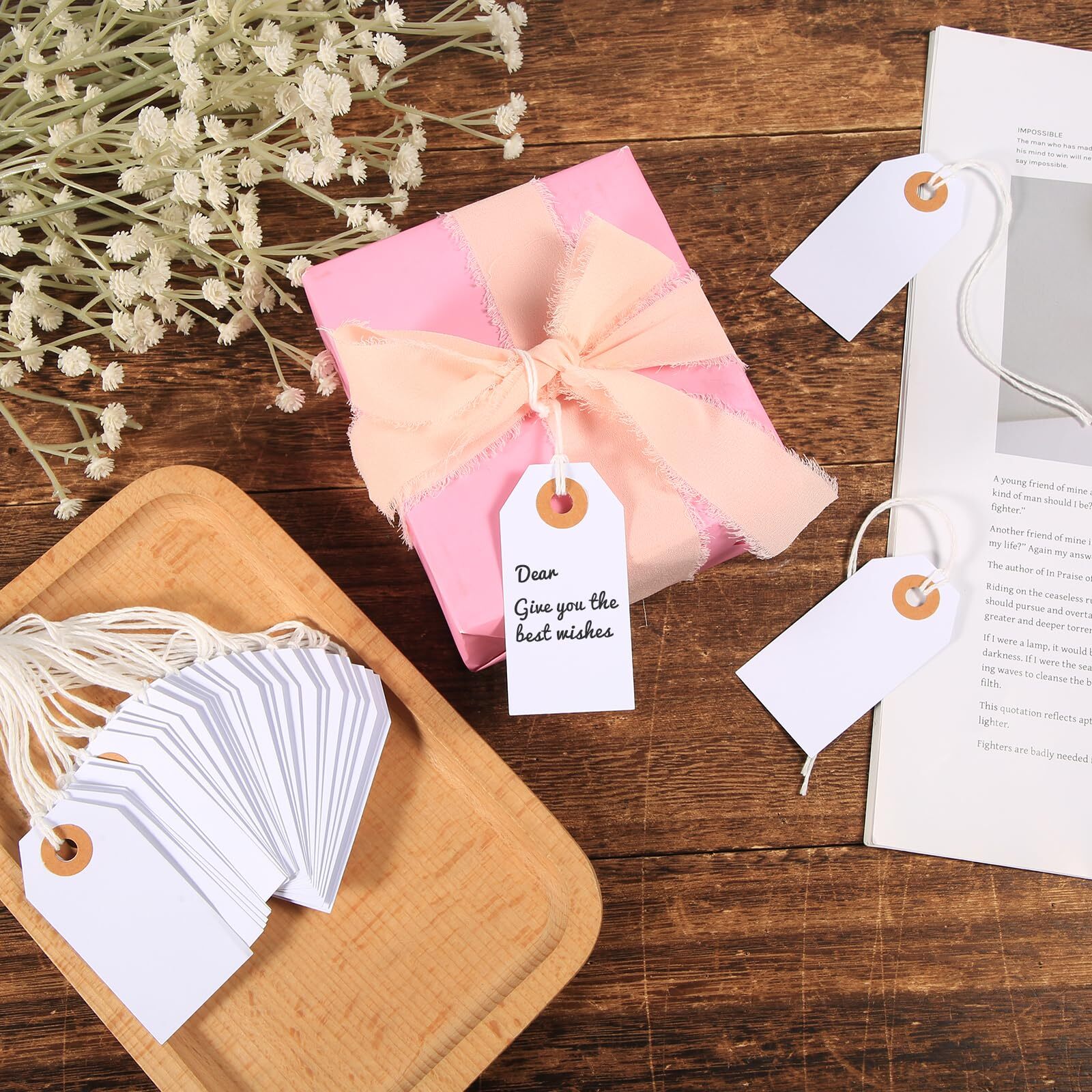 100 Blank Price Tags with Strings 2.75x1.37 Writable Gift Tags Multi-Use