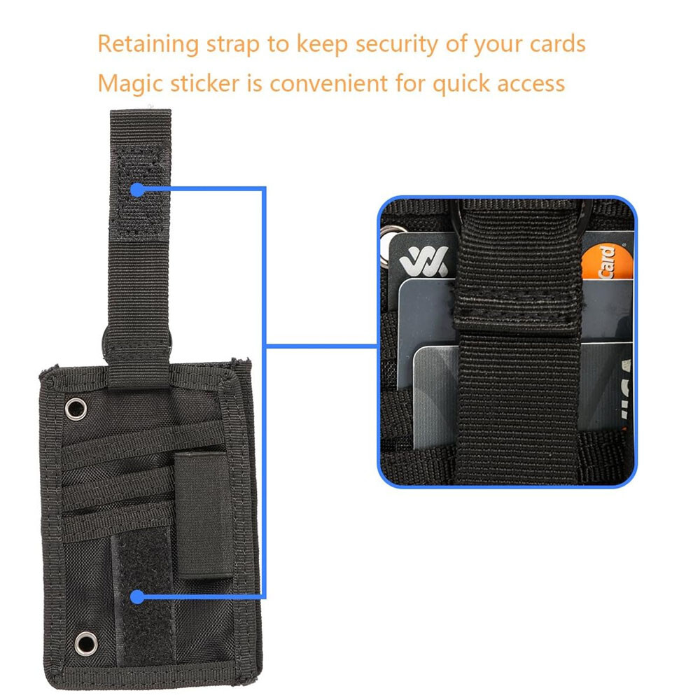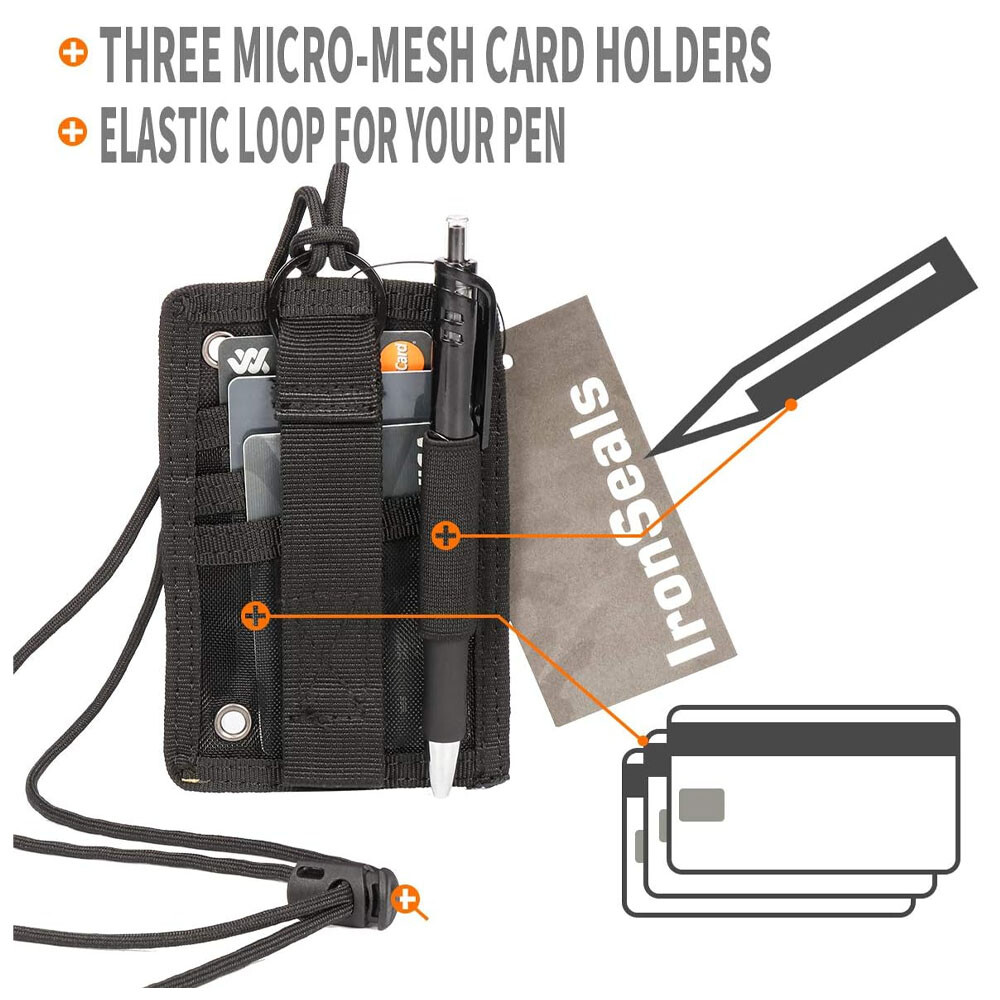 2PC Black Tactical ID Card Holder Hook Loop Patch Badge Organizer - Neck Lanyard
