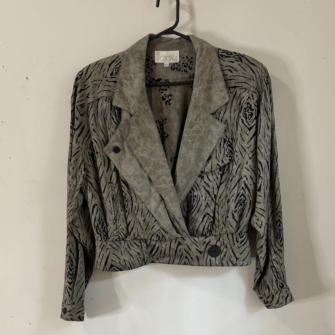 как выглядит Vintage cache cropped gray and black mixed animal print jacket фото