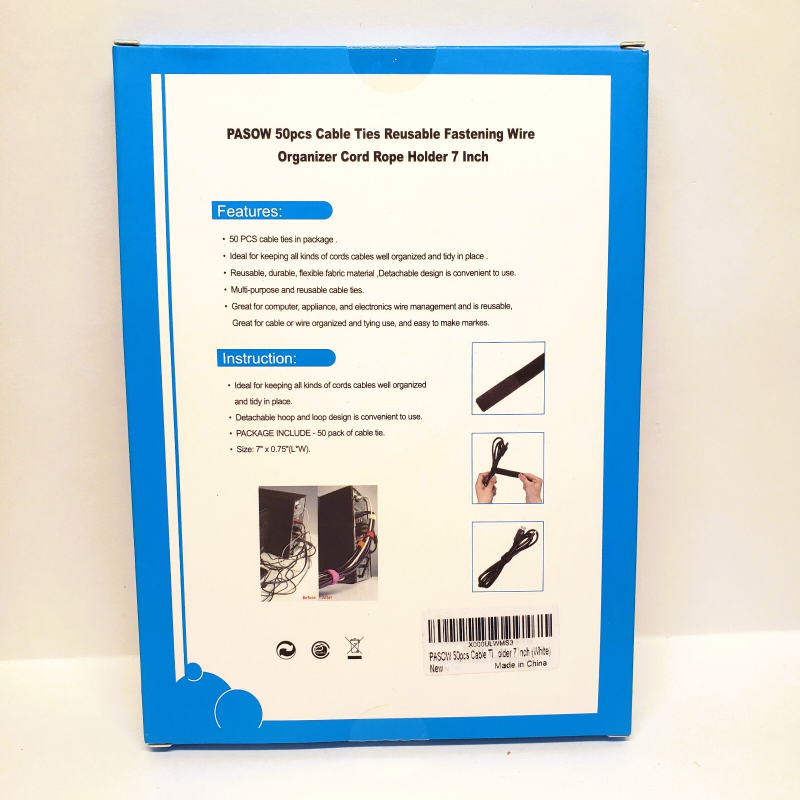 NEW 50 pcs Reusable Cable Ties Hook and Loop 7 x 0.75 White Wire Organizer