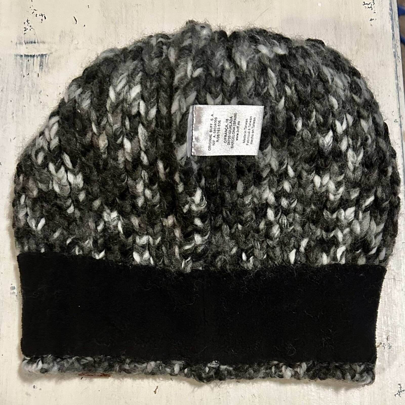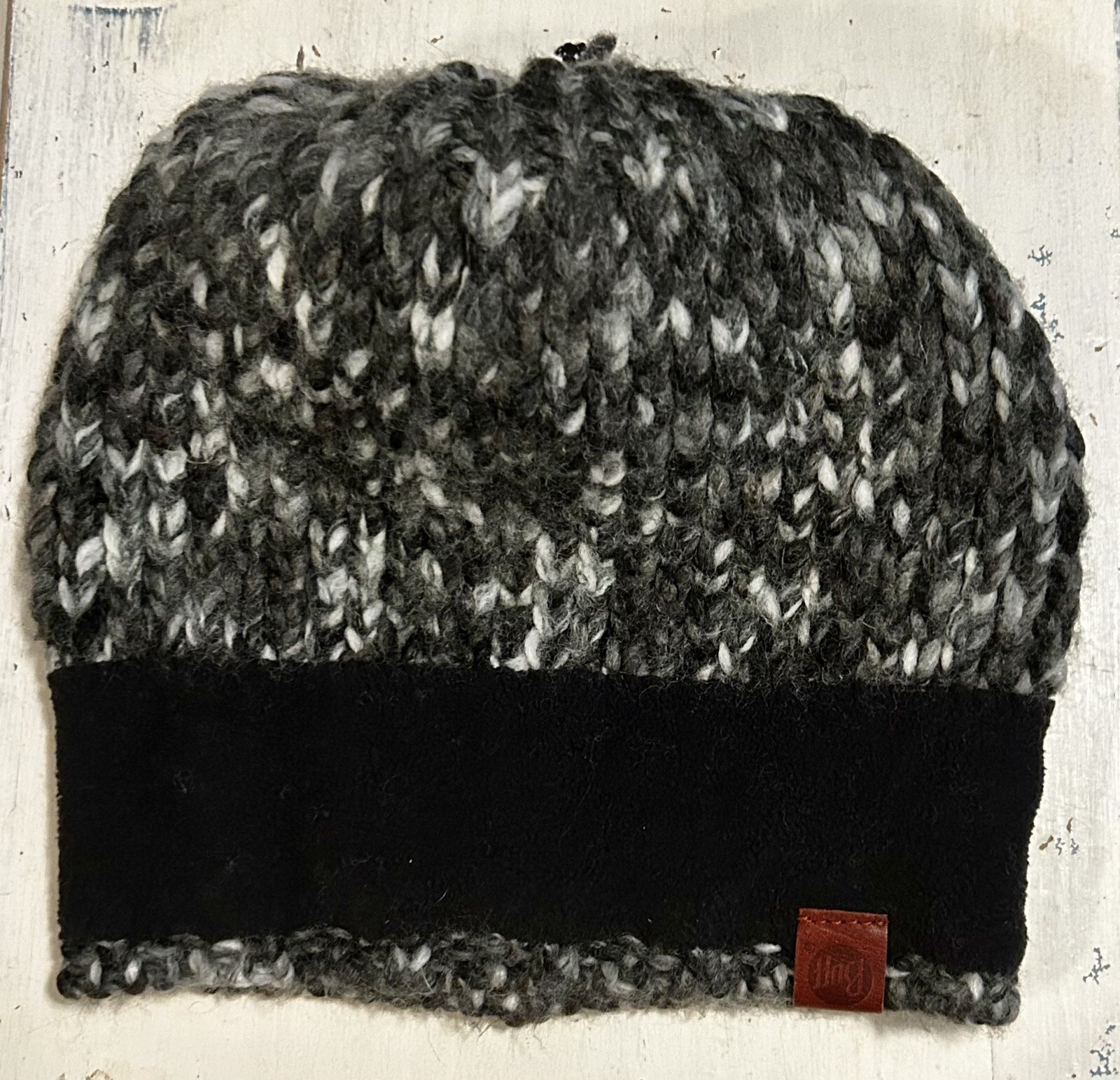 как выглядит BUFF Women s Margo Knit Beanie Winter Hat Gray Charcoal White Pom Beanie EUC фото