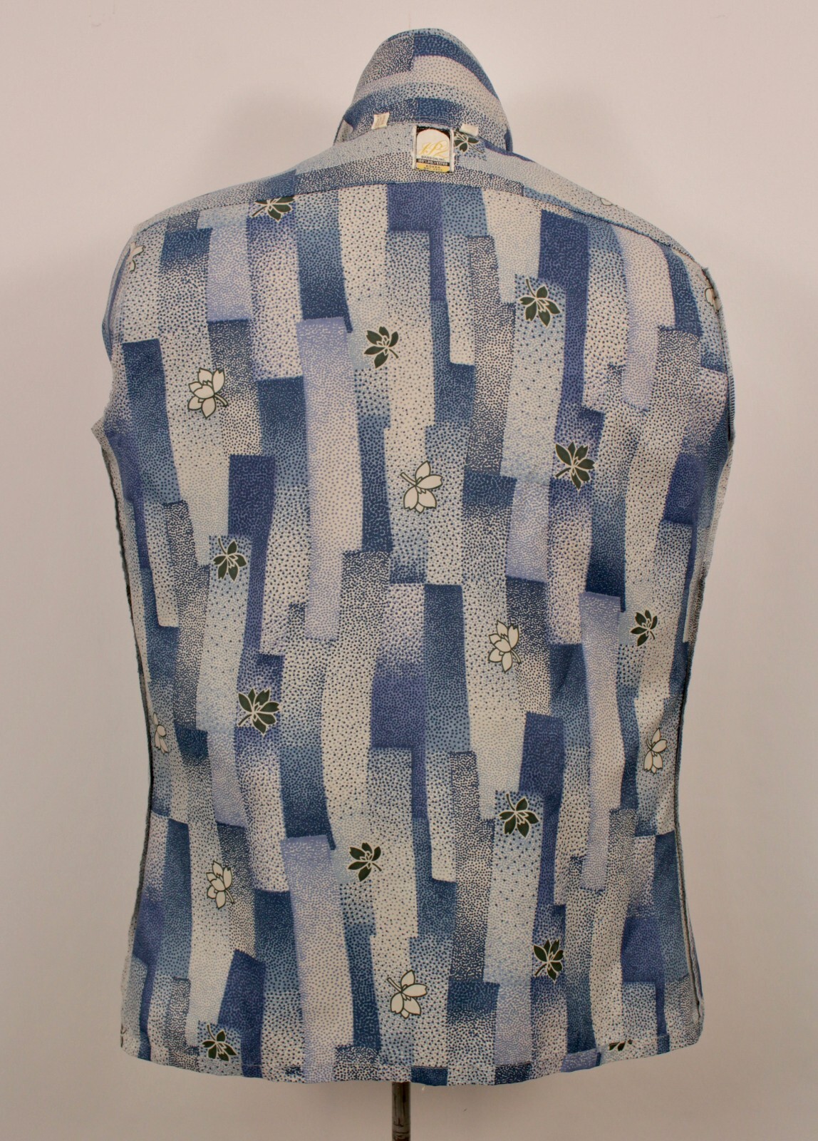 как выглядит Mens VTG 70s Blue White Geometric Print Shirt Sz M 1970s Disco Polyester фото