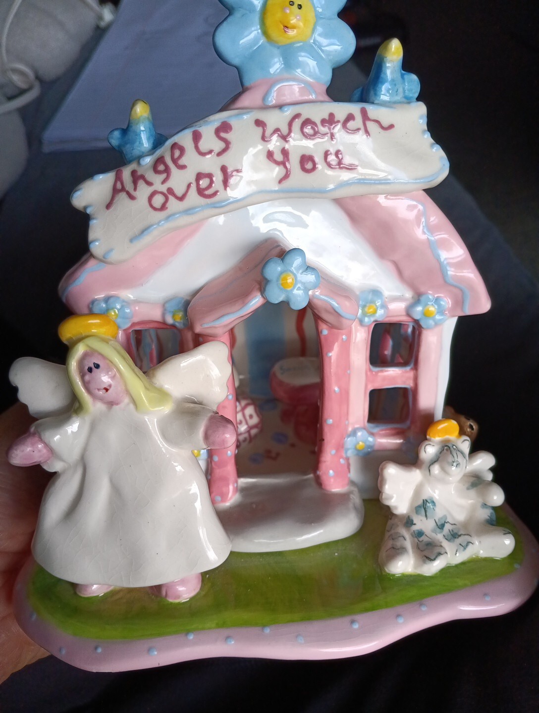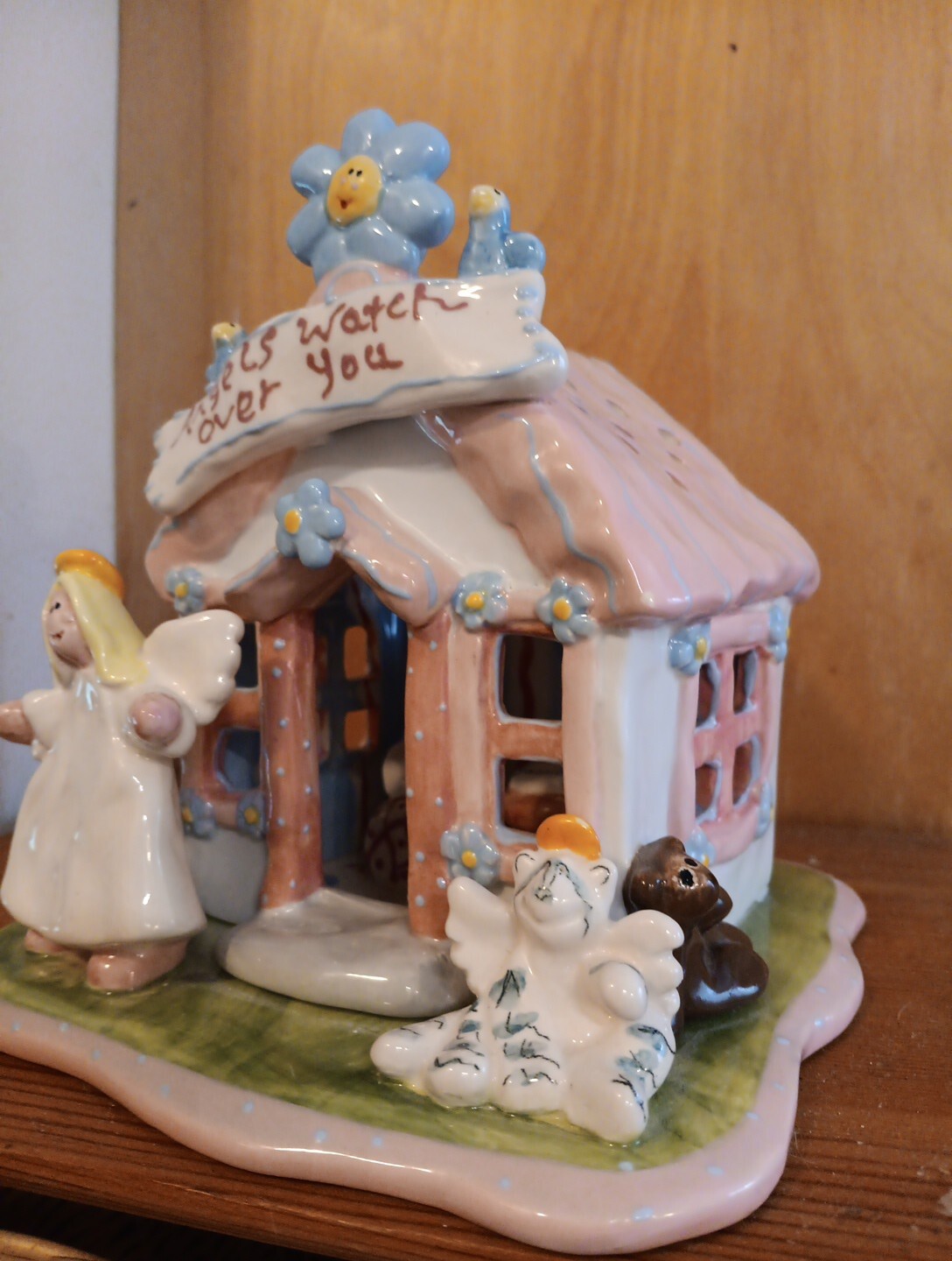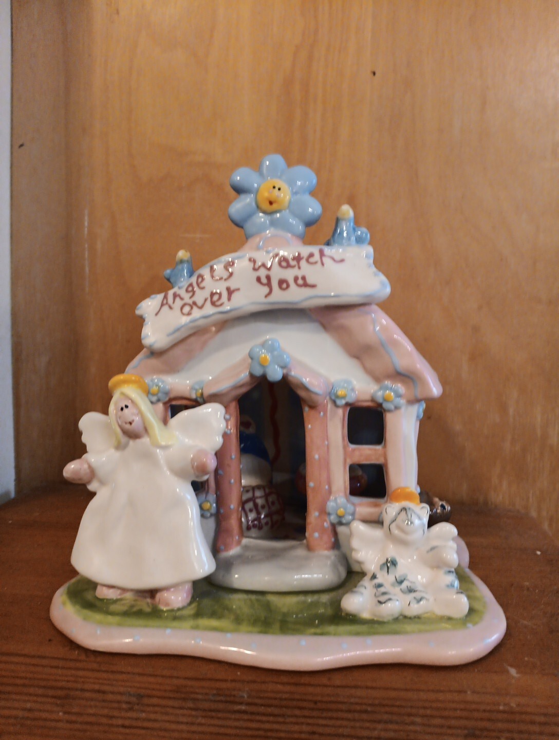 Pacific R. Russell Light Angels Watch Over You Child Baby Nursery Ceramic House