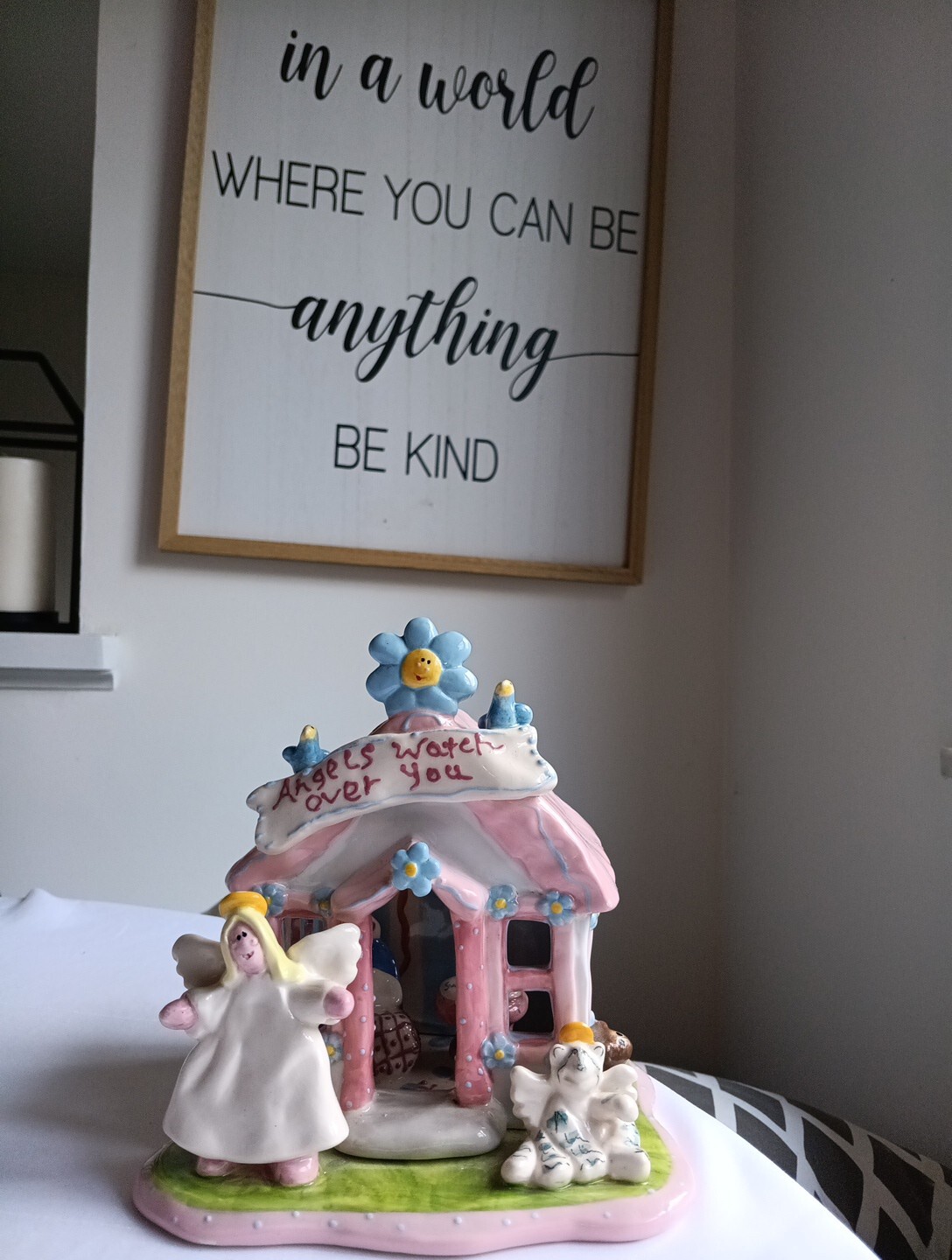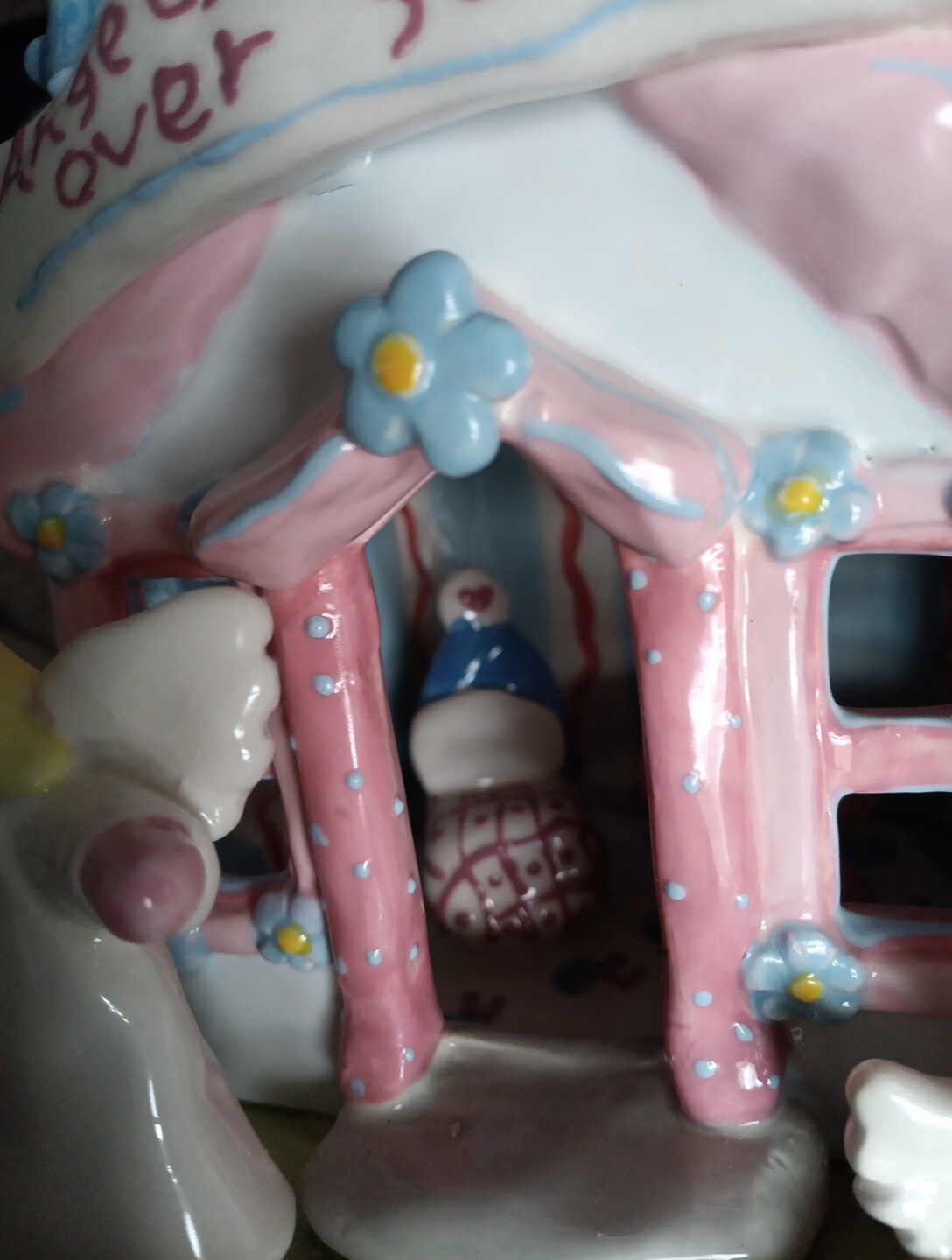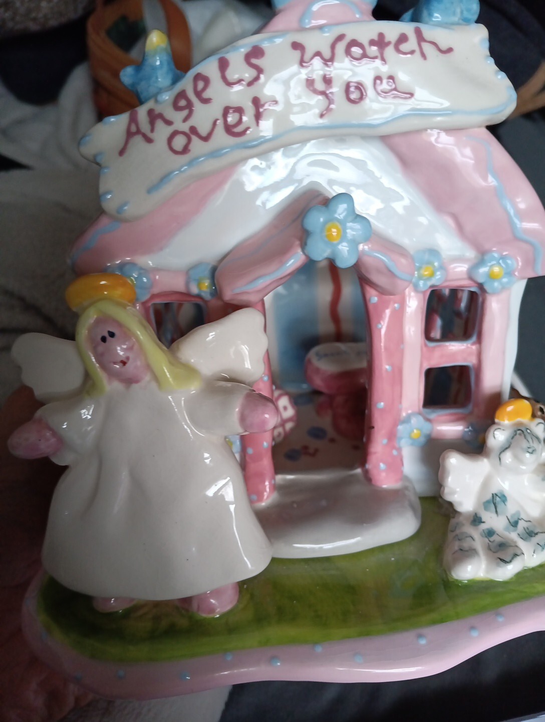 Pacific R. Russell Light Angels Watch Over You Child Baby Nursery Ceramic House